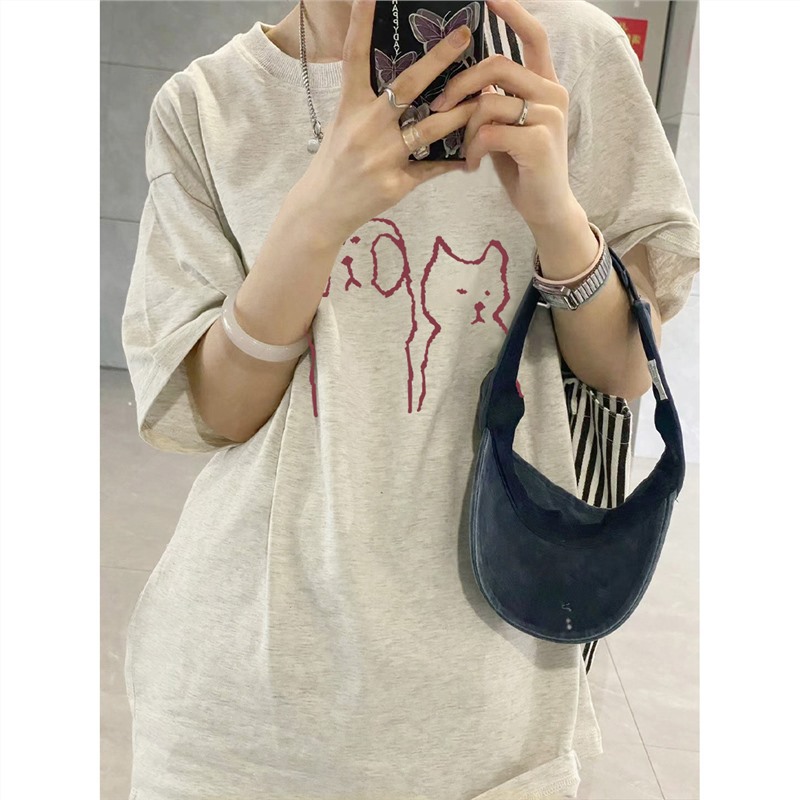 纯棉正肩短袖t恤女新款夏季设计感小众美式宽松半袖上衣