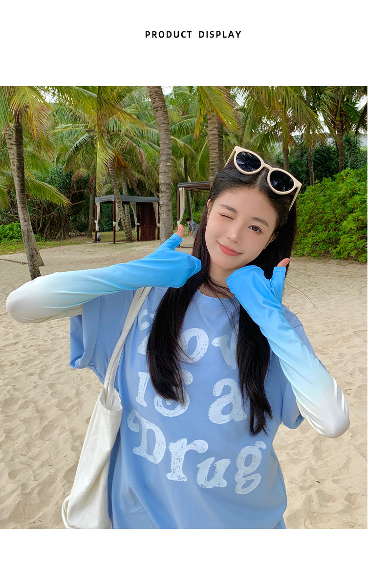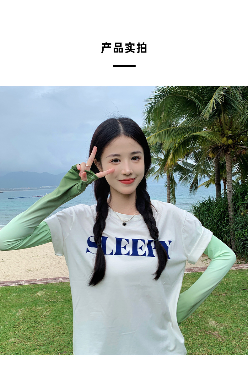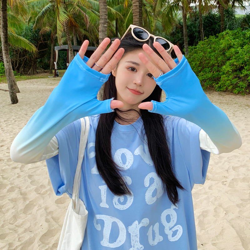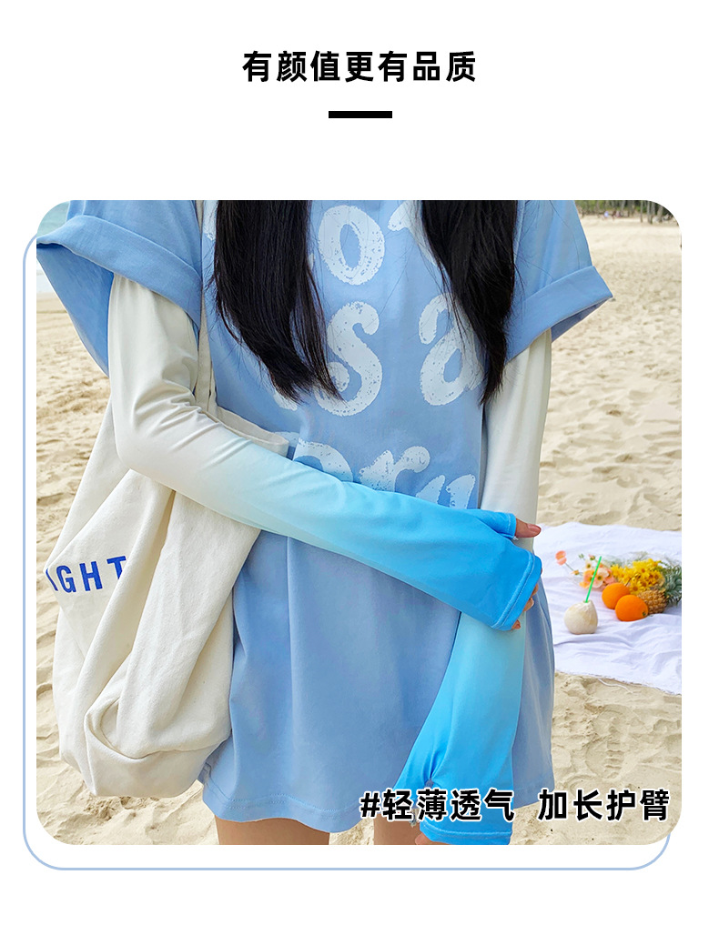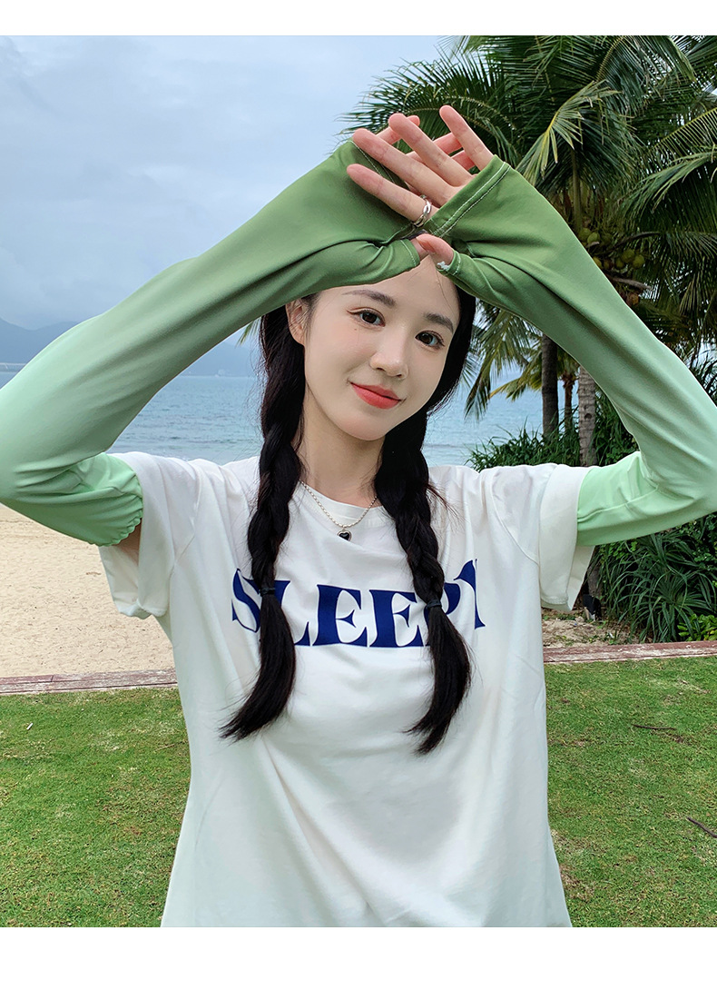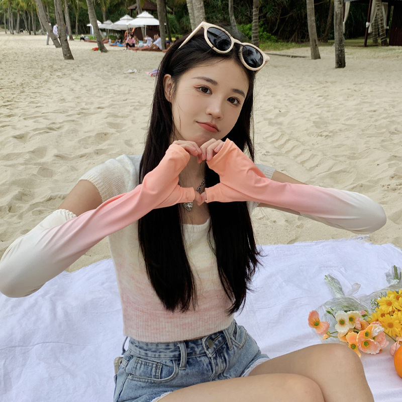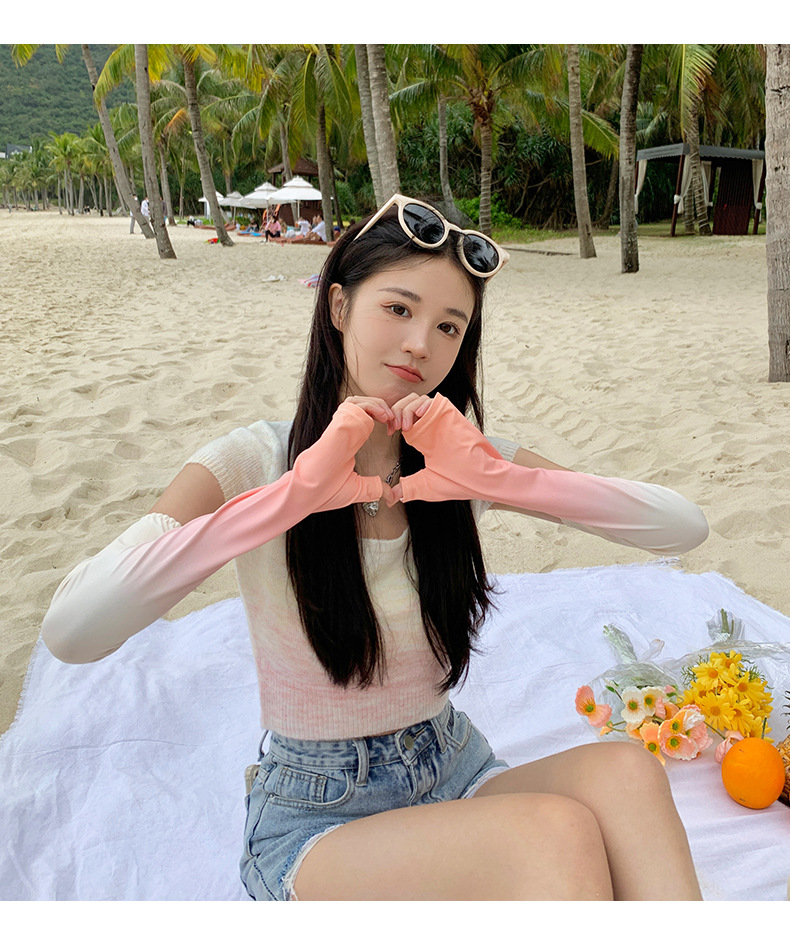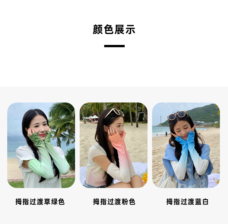 牛油果绿色渐变防晒冰袖女夏季薄款防紫外线袖套开车冰丝护臂手袖