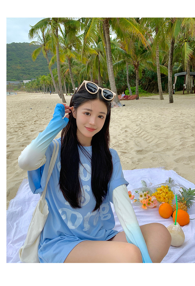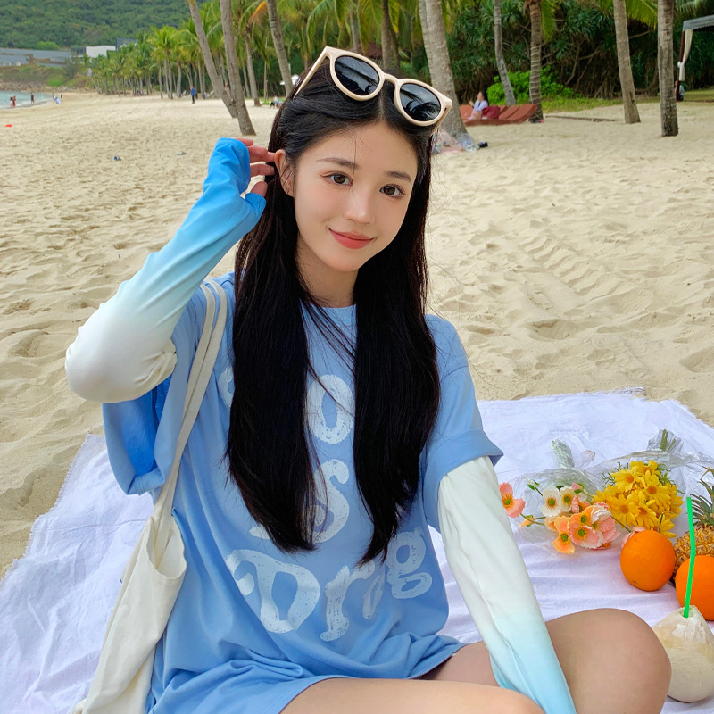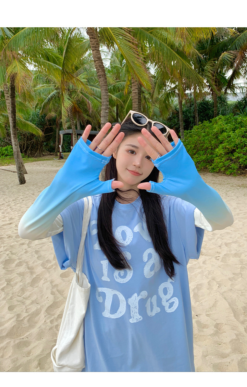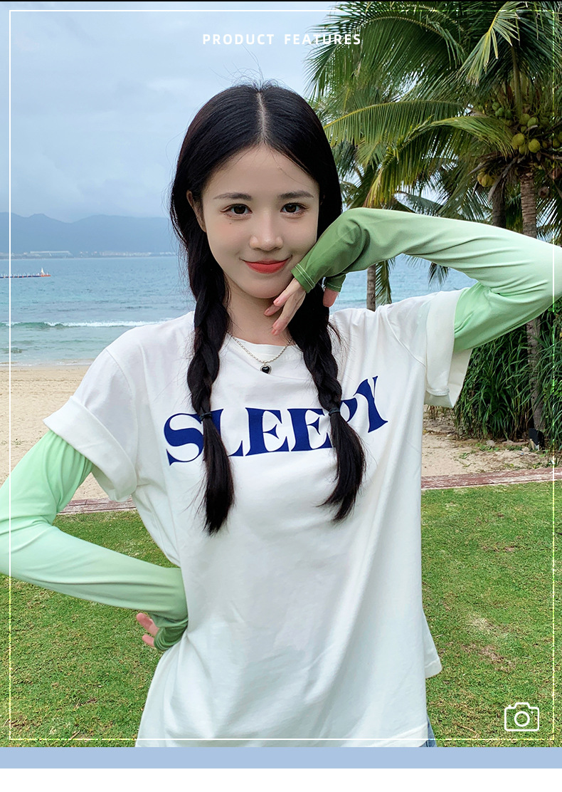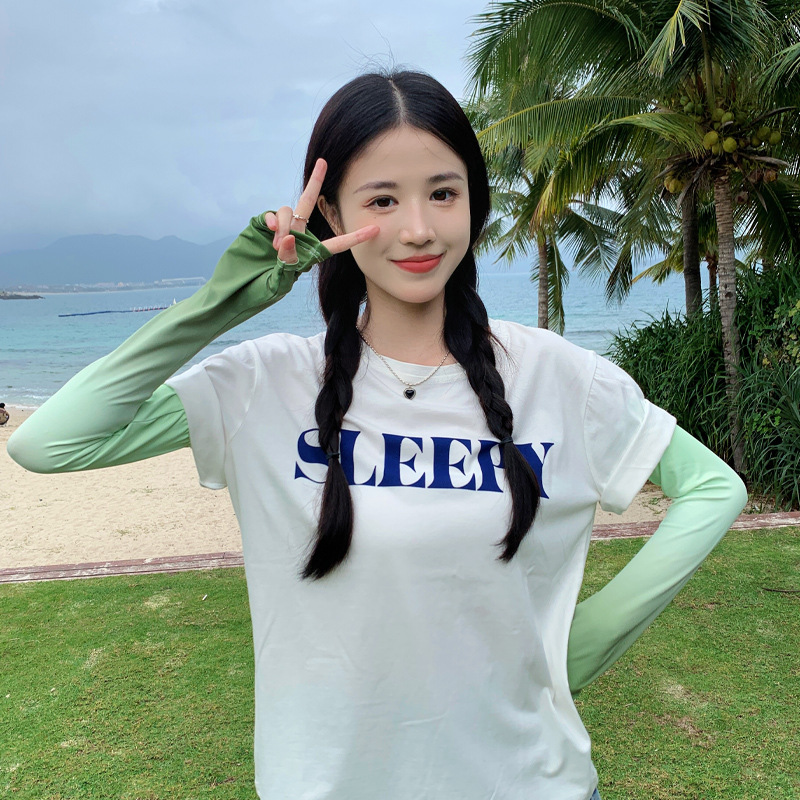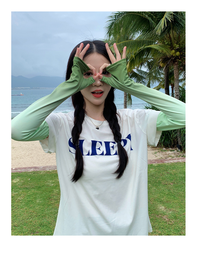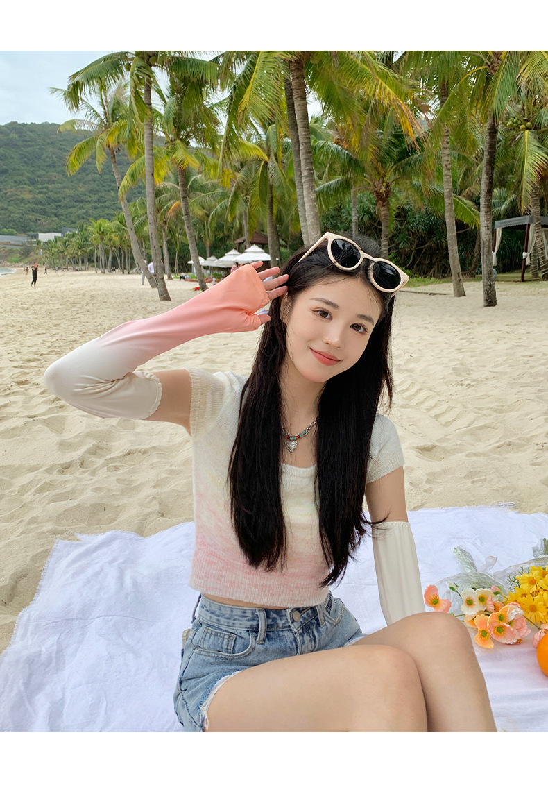 牛油果绿色渐变防晒冰袖女夏季薄款防紫外线袖套开车冰丝护臂手袖