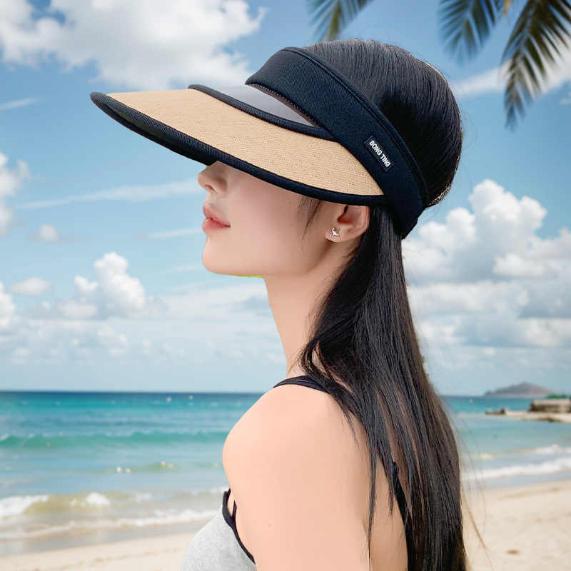 UPF50+大帽檐空顶防晒帽女夏季新款遮阳帽户外骑车防紫外线太阳帽