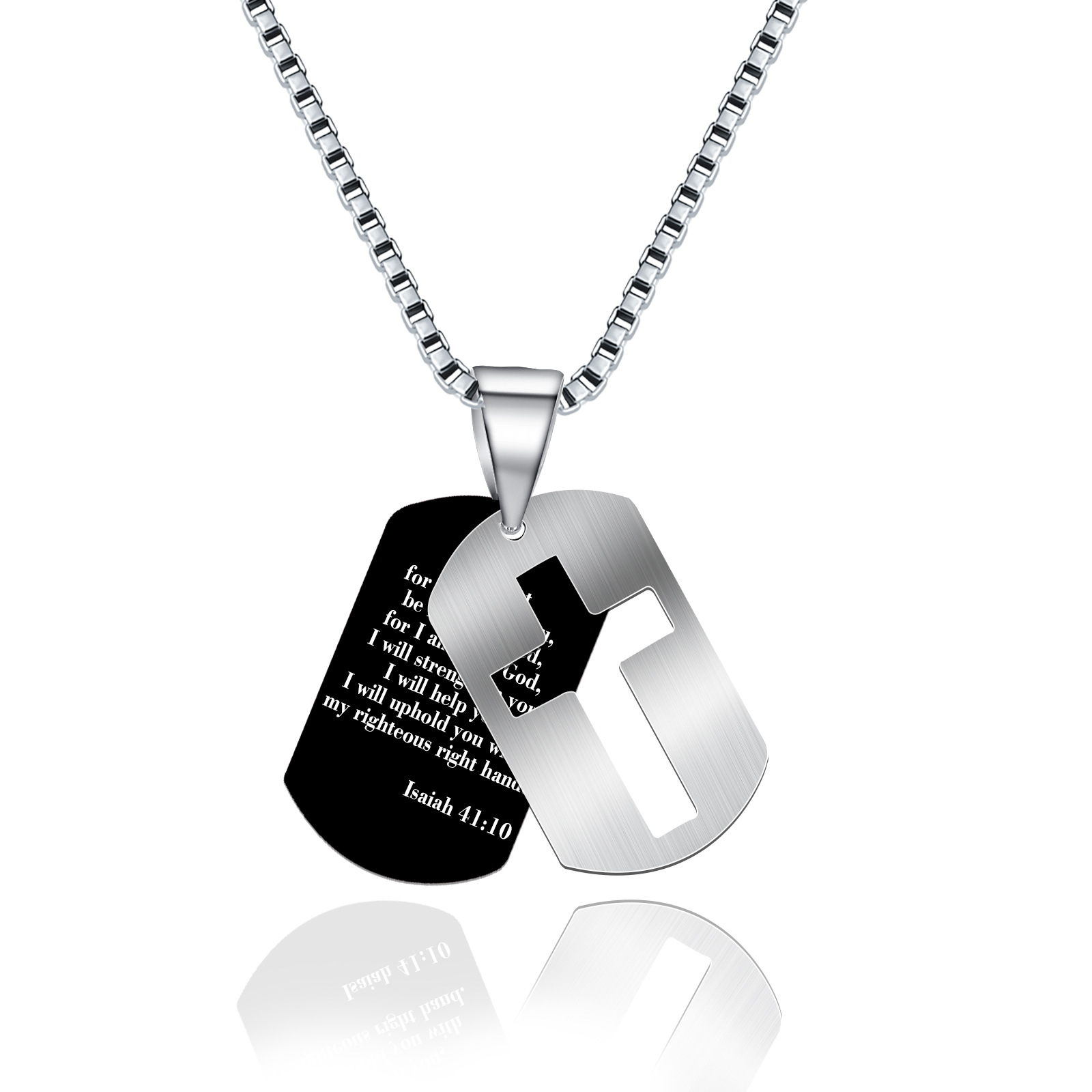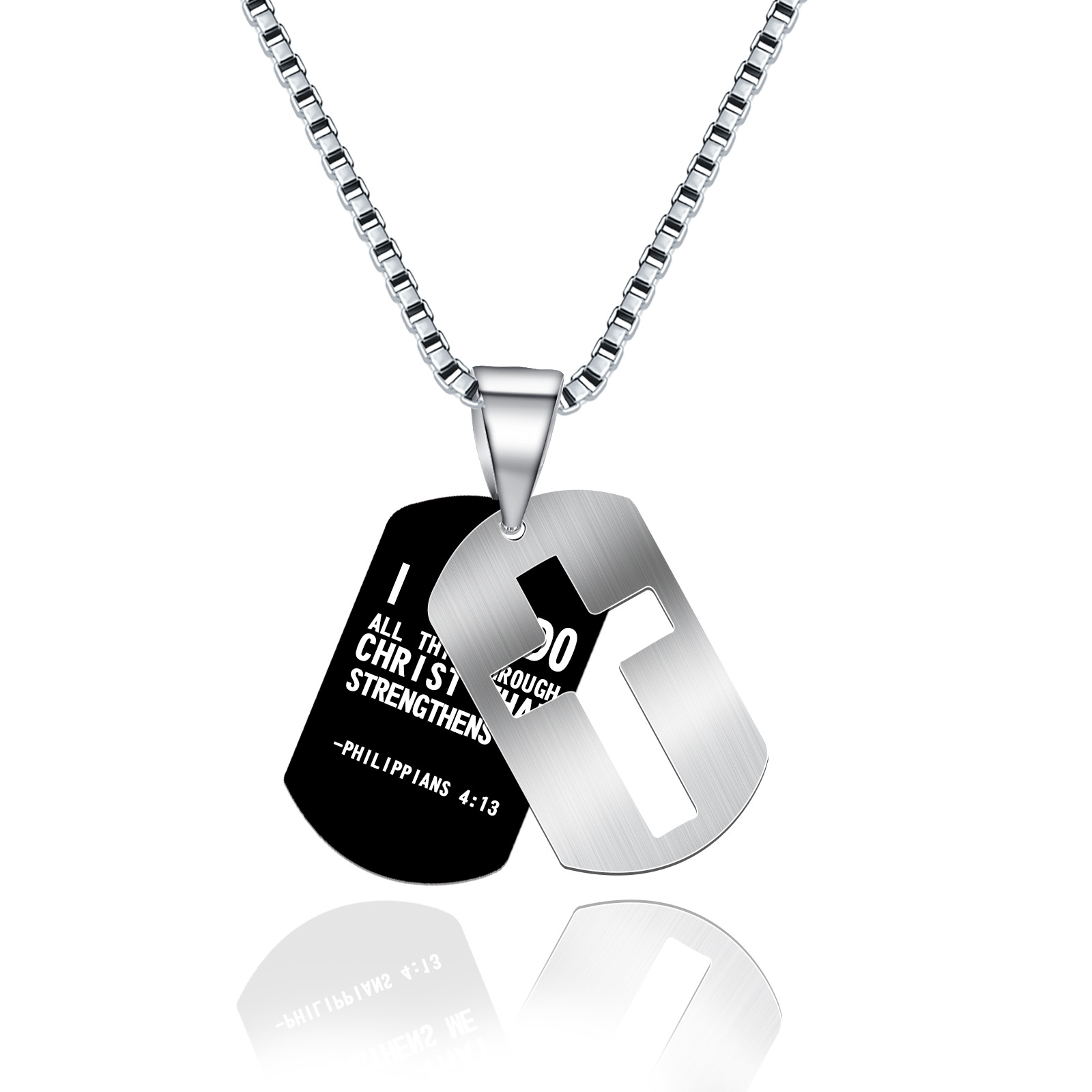 男士项链不锈钢黑色军牌镂空十字吊坠项链男孩礼物不锈钢刻字项链