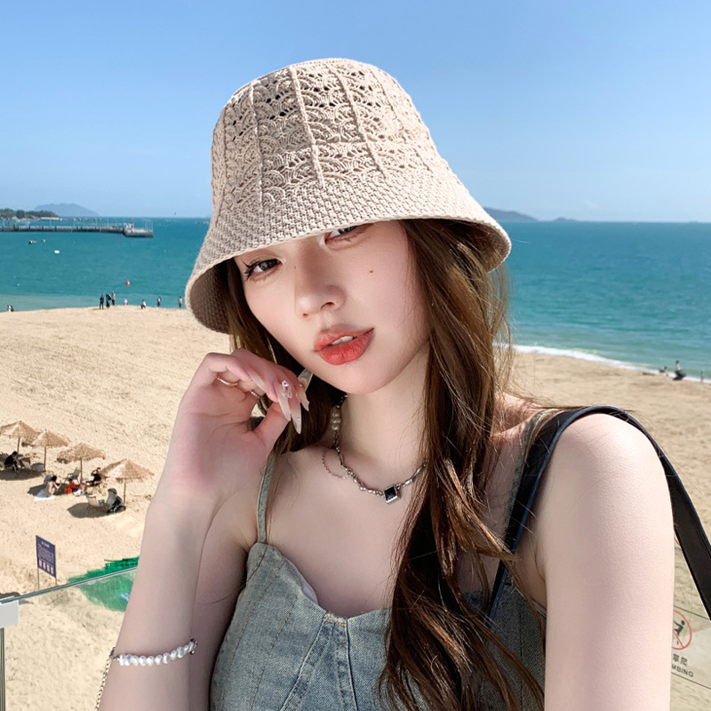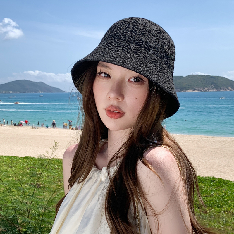 网红同款遮阳帽夏季沙滩小檐简约防晒帽女出游度假编织水桶渔夫帽