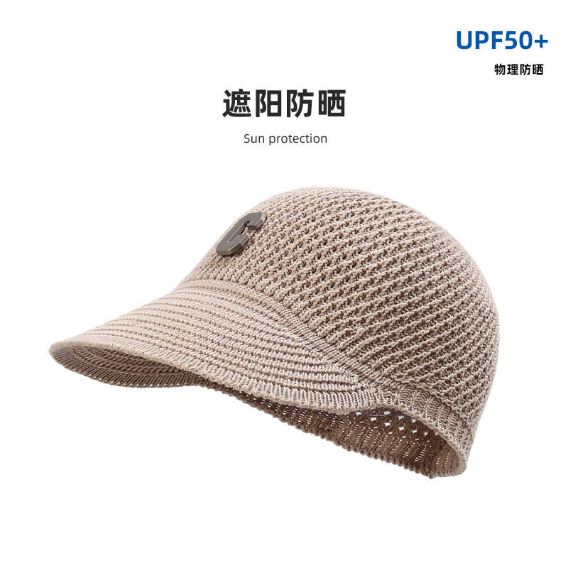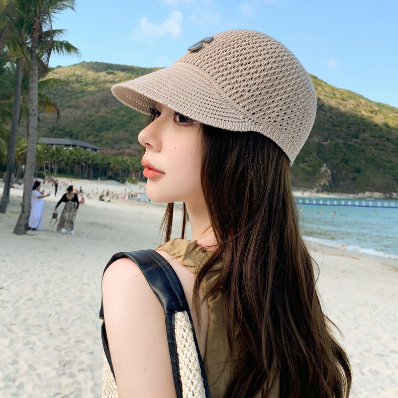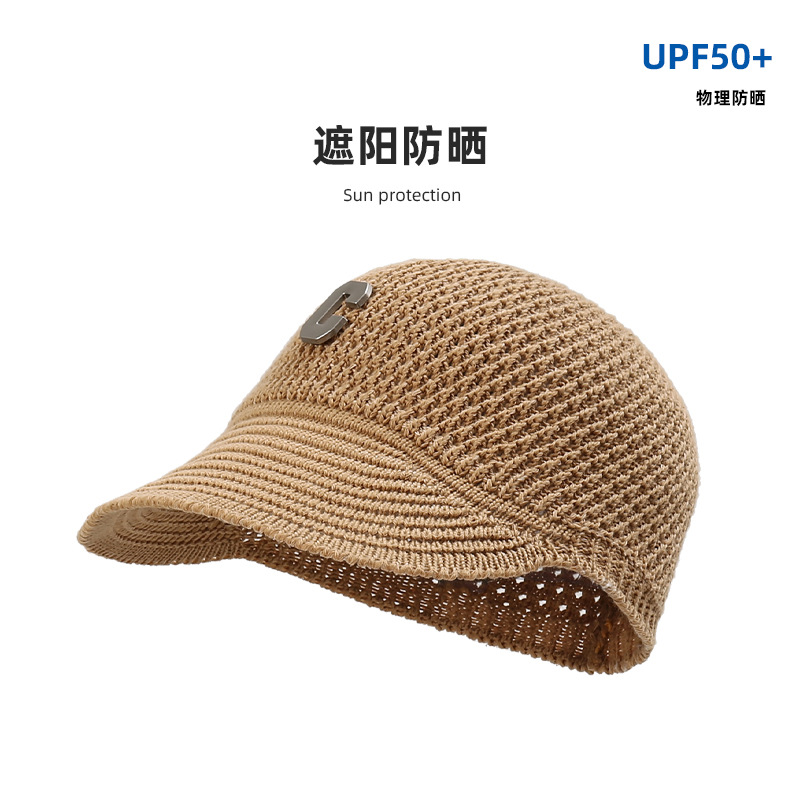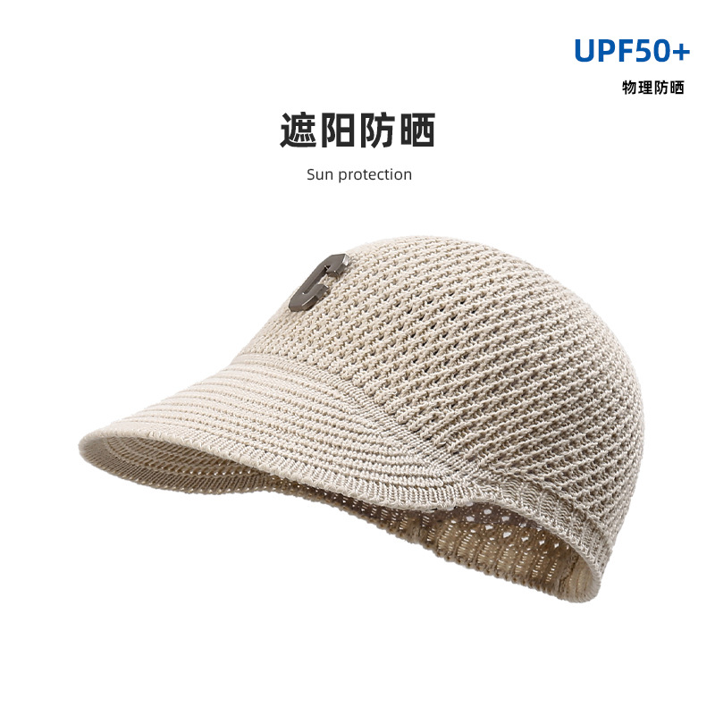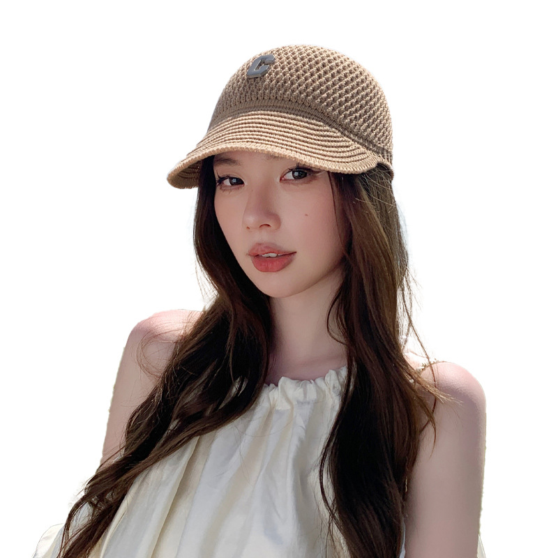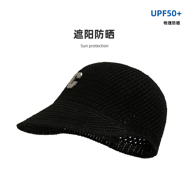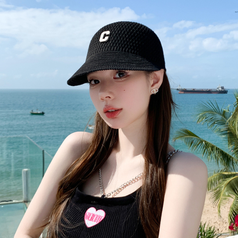 新款针织镂空鸭舌帽C字母简约网红遮阳帽韩版小檐透气防晒棒球帽