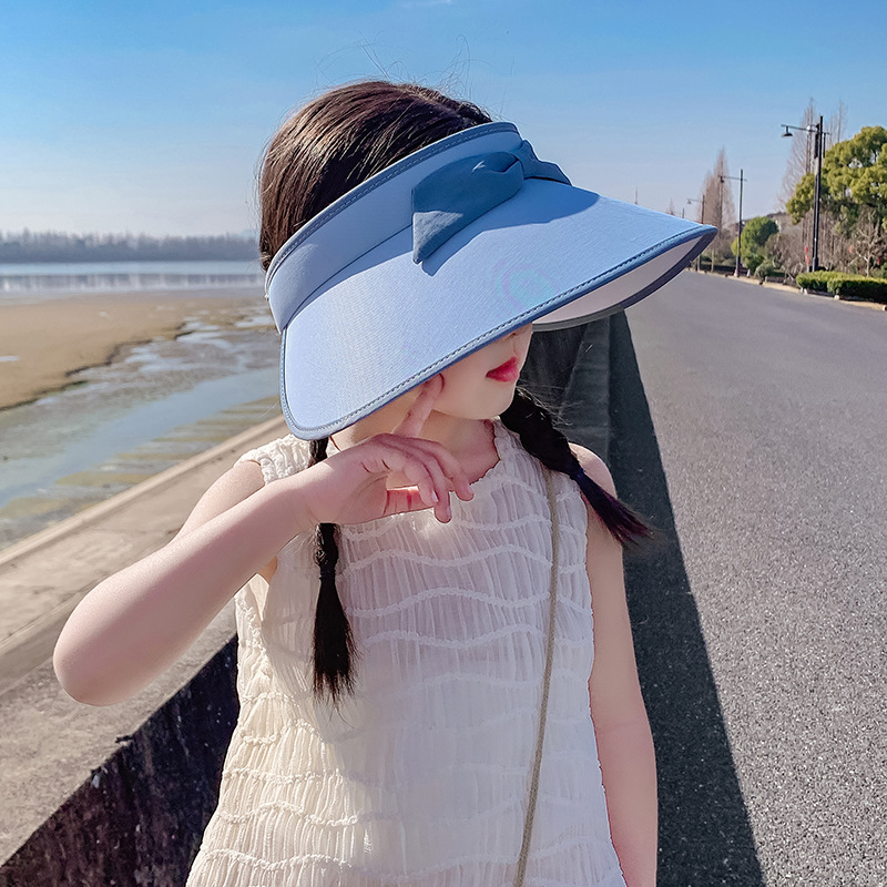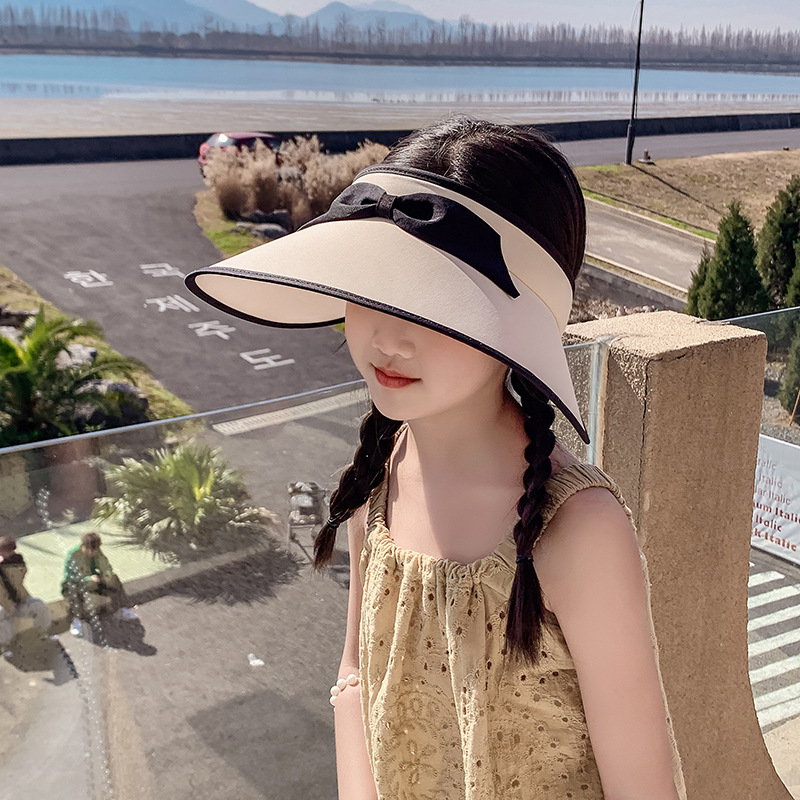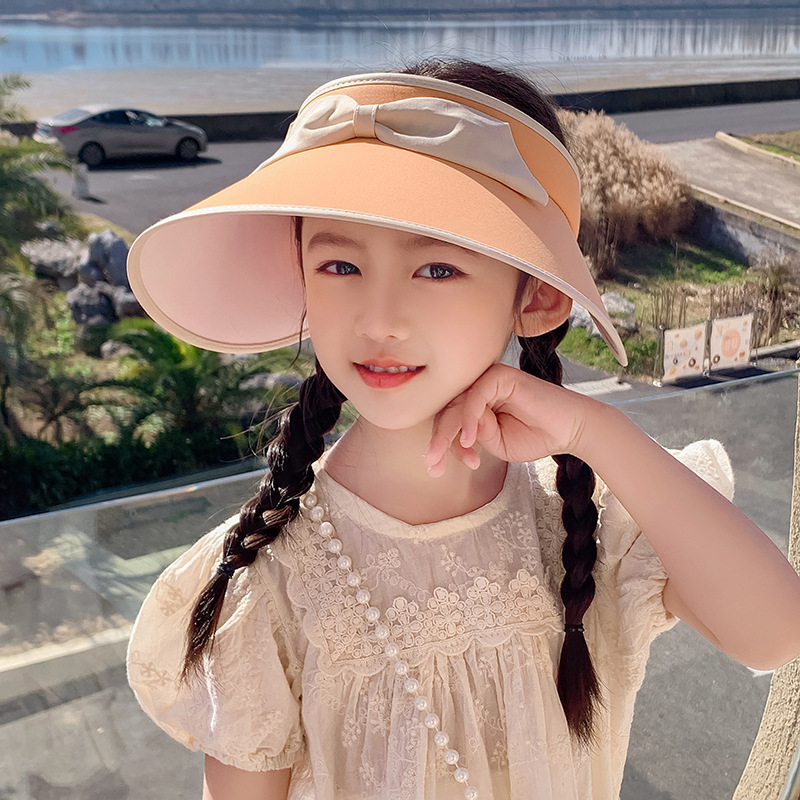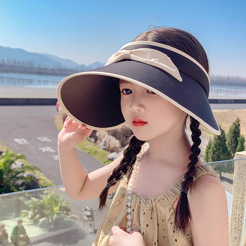 儿童空顶帽男童女童无顶防晒帽韩版蝴蝶结夏季宝宝出游大檐遮阳帽