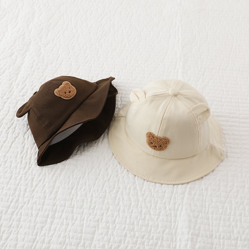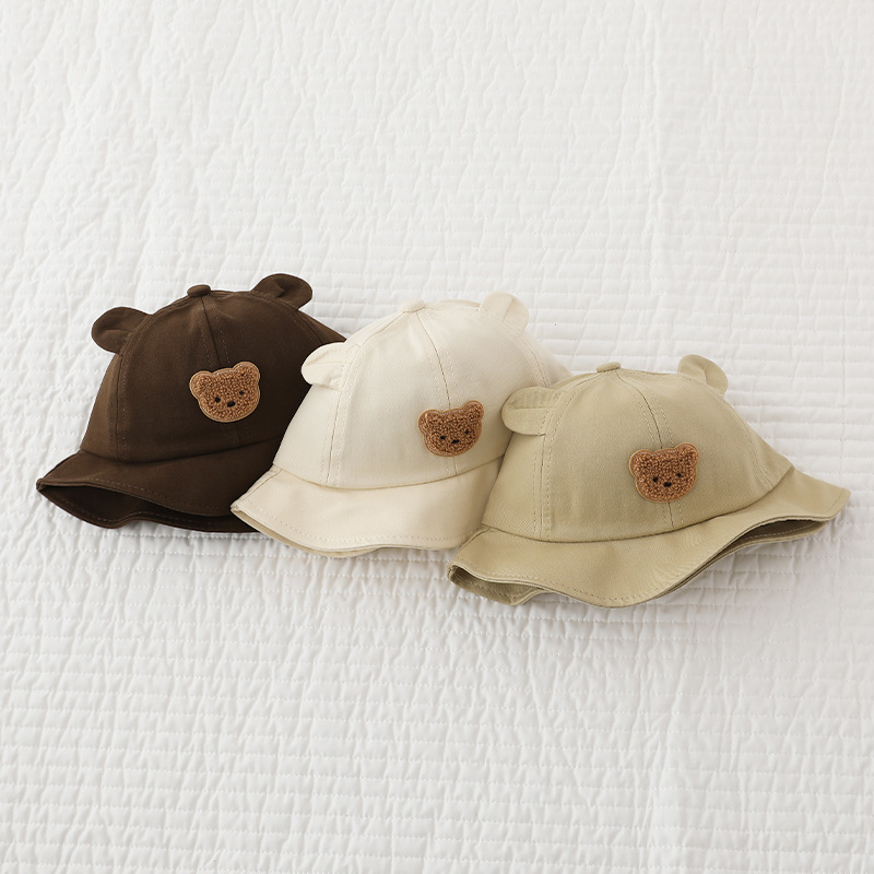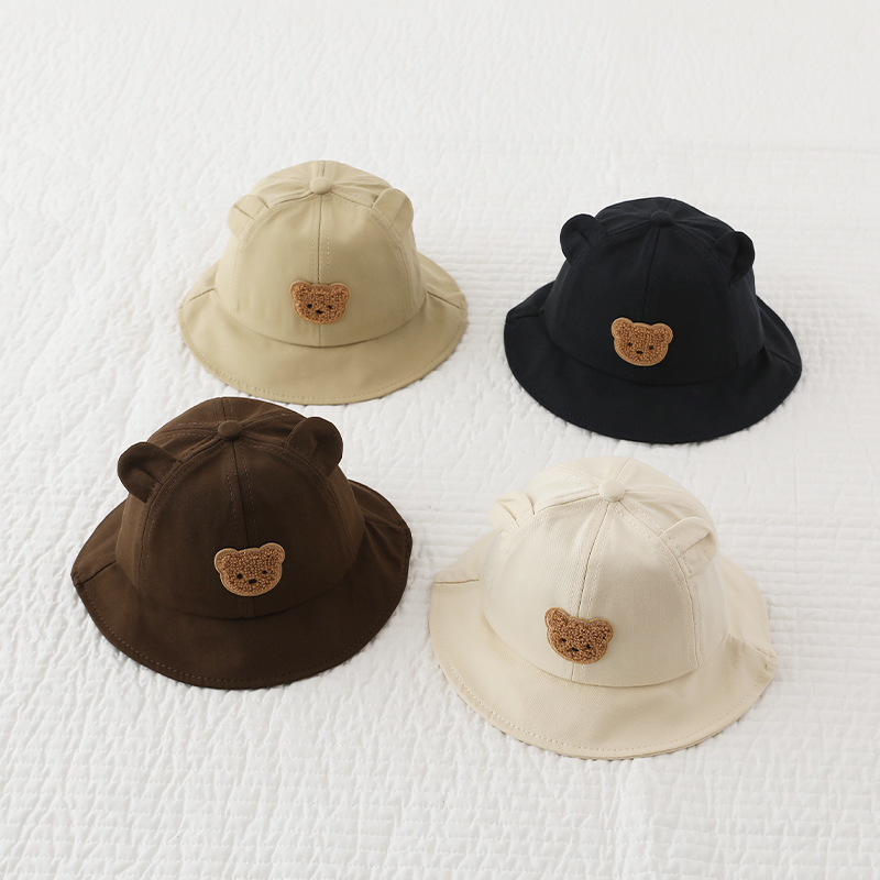 日系休闲儿童春秋季新款渔夫帽男童女童防晒遮阳宝宝小熊幼儿盆帽