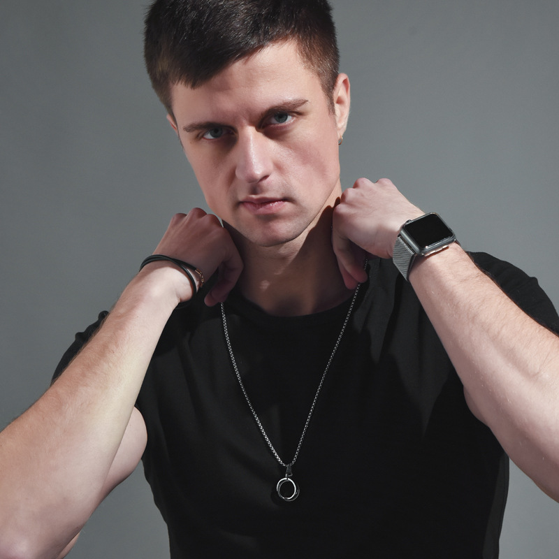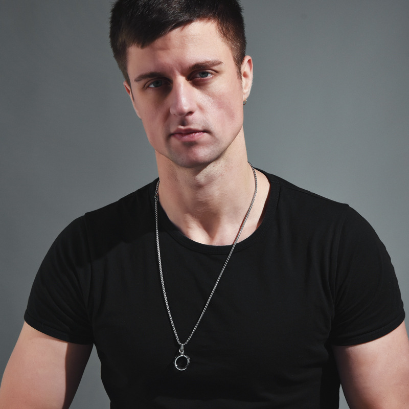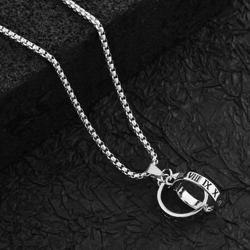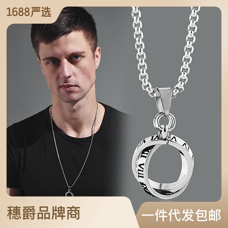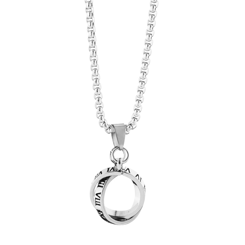欧美双环戒指项链男士韩版字母钛钢吊坠霸气个性潮男学生项链