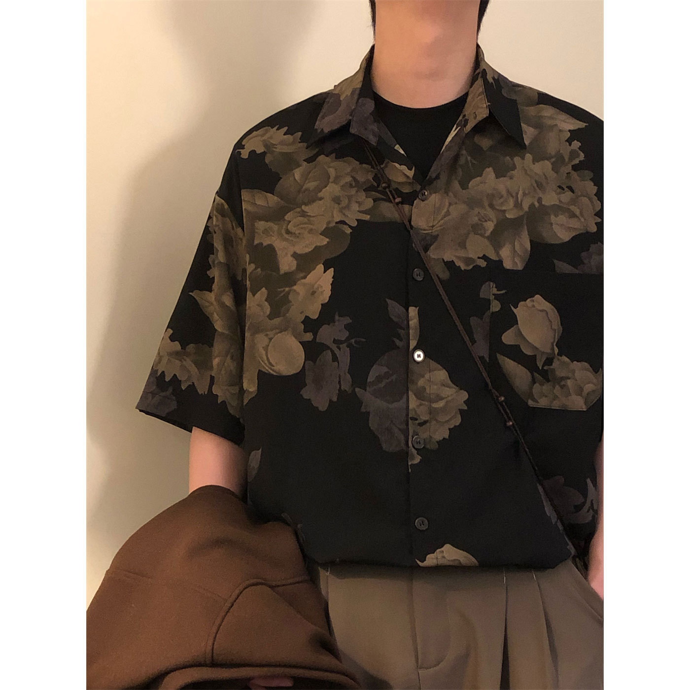 美式复古潮牌短袖花衬衫男夏季新款新中式港味高级感痞帅上衣