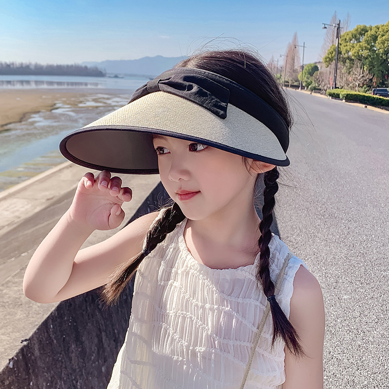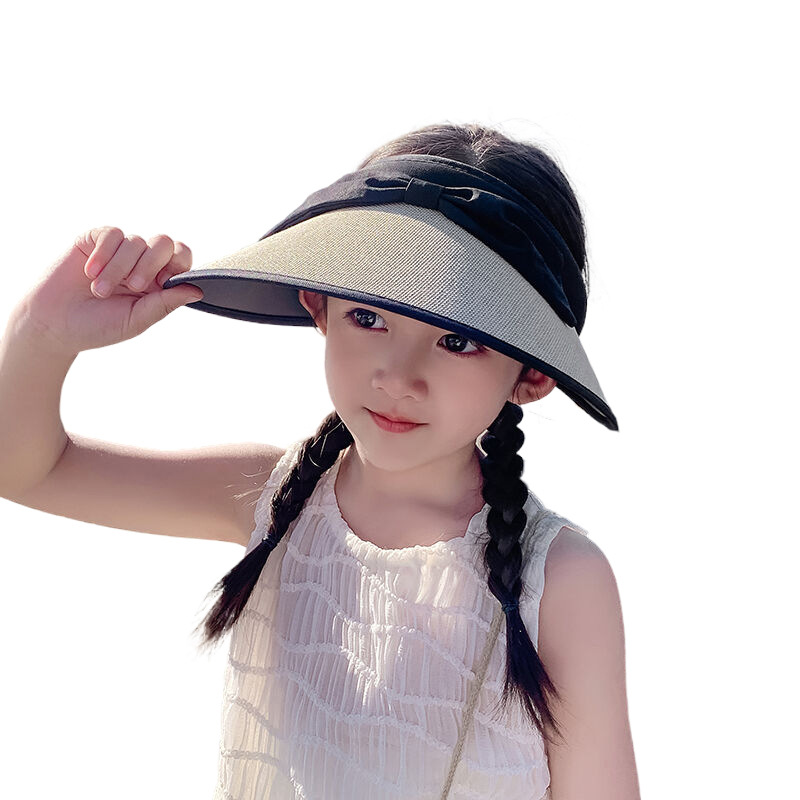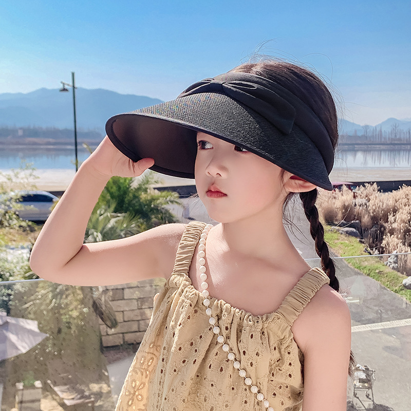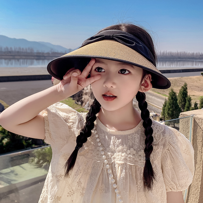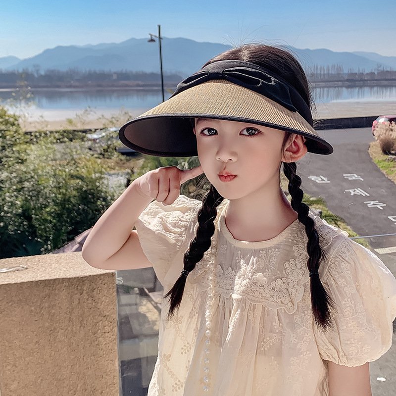 韩版防晒帽儿童学院风蝴蝶结防紫外线大童遮阳帽子大檐发箍太阳帽