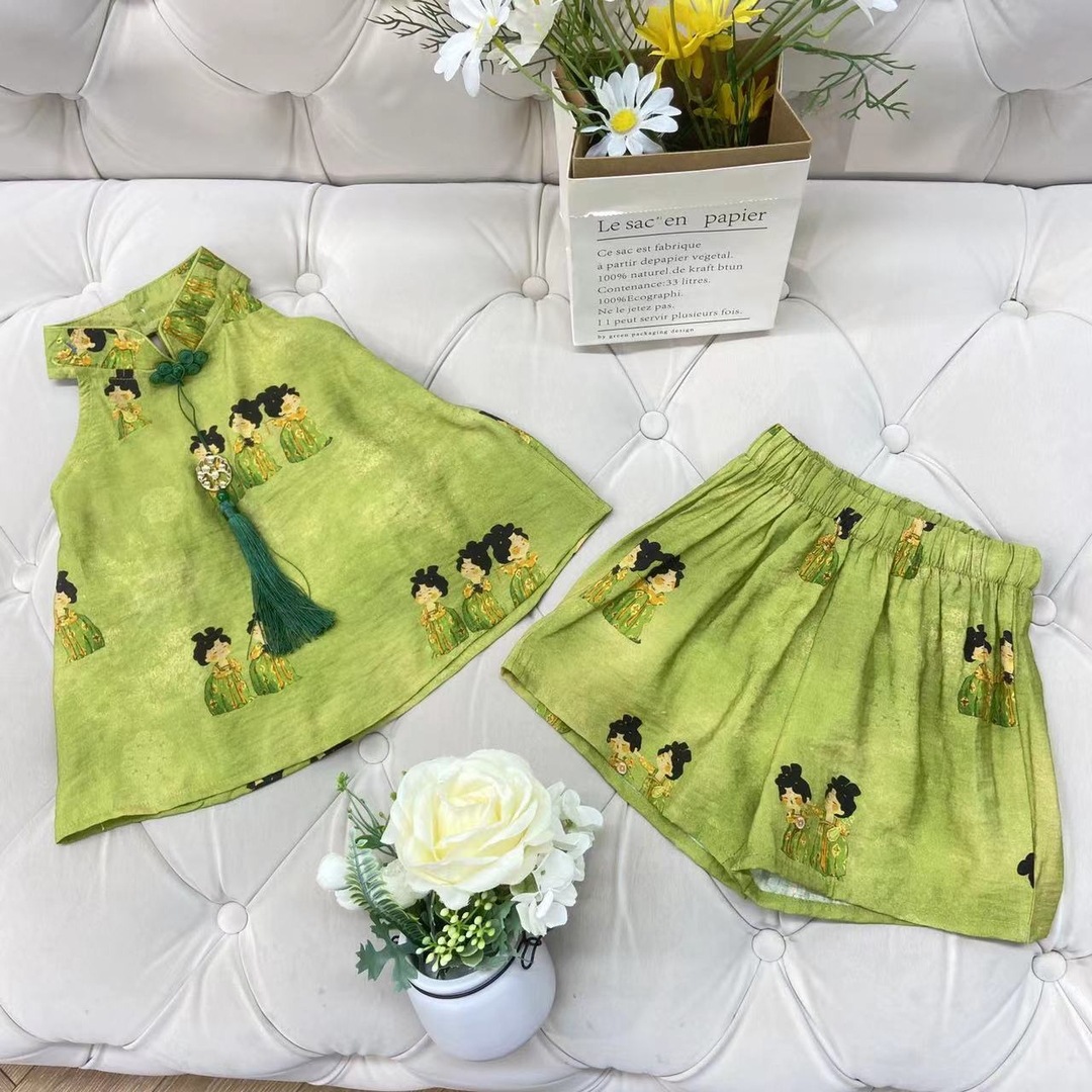 新品女童套装2025夏季新款中式古风吊带短裤两件套中国风
