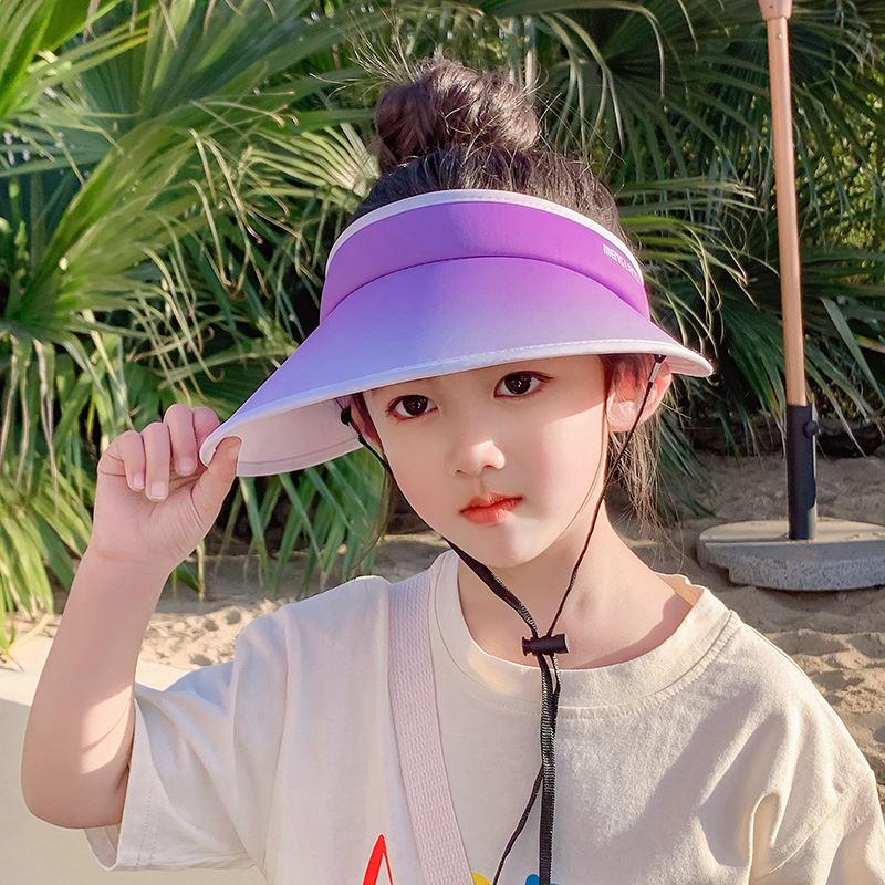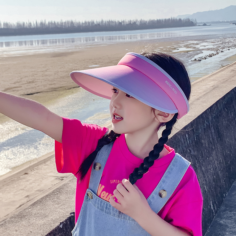 日系渐变儿童空顶帽春夏遮阳防晒中大童发箍帽防紫外线大檐太阳帽
