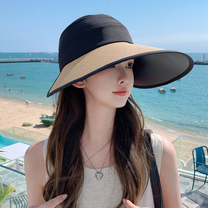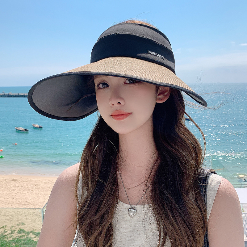 大帽檐防晒帽女新款春夏季防紫外线草帽骑车太阳帽空顶遮阳帽