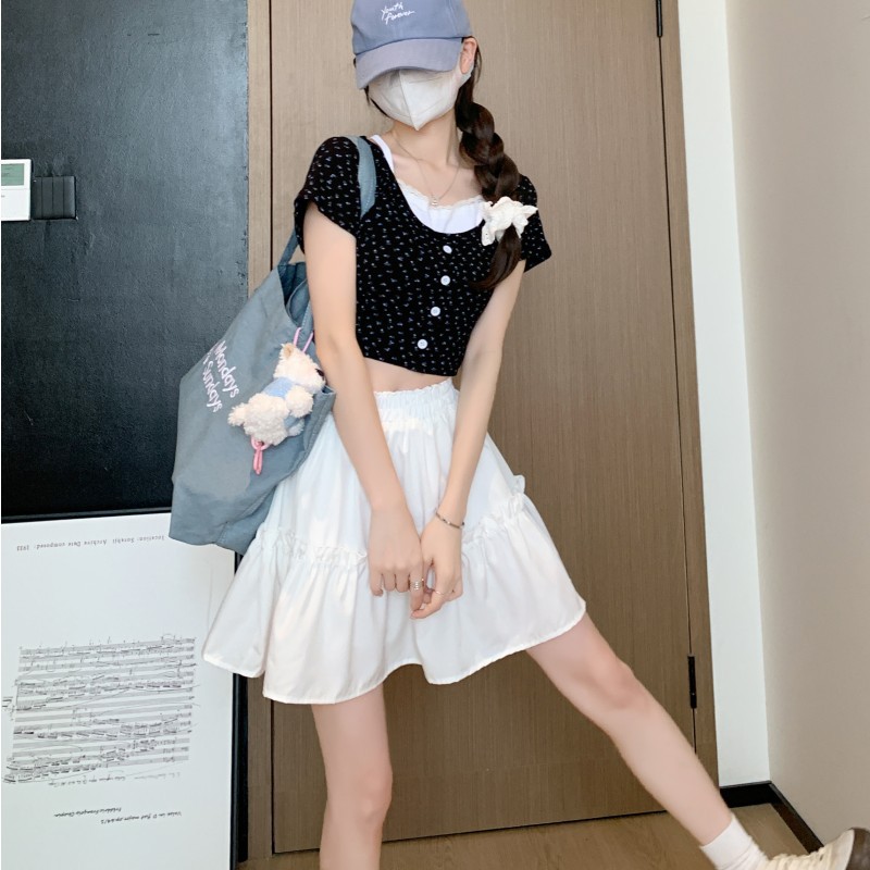 白色蕾丝短裙女春秋夏新款芭蕾风蛋糕裙a字蓬蓬半身裙子
