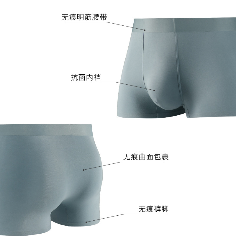 男士内裤男纯色平角裤莫代尔无痕运动男生透气抗菌短裤头