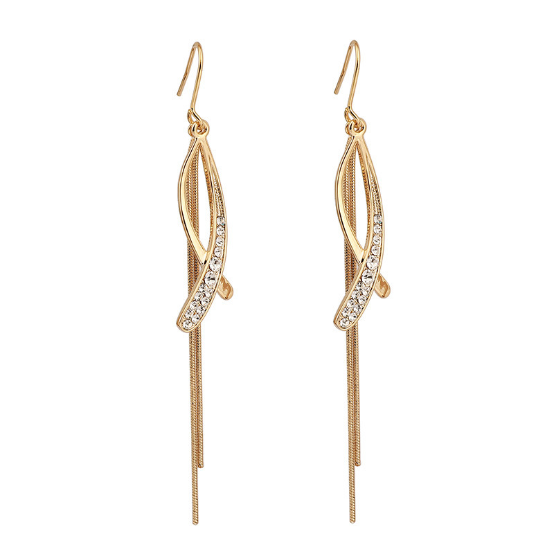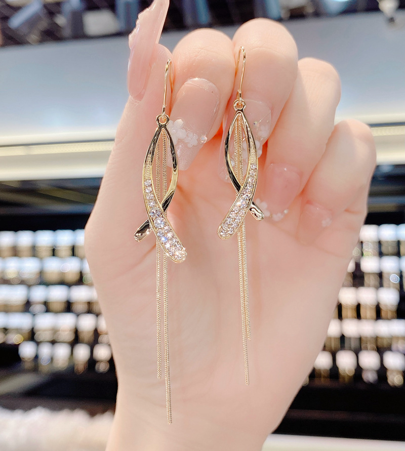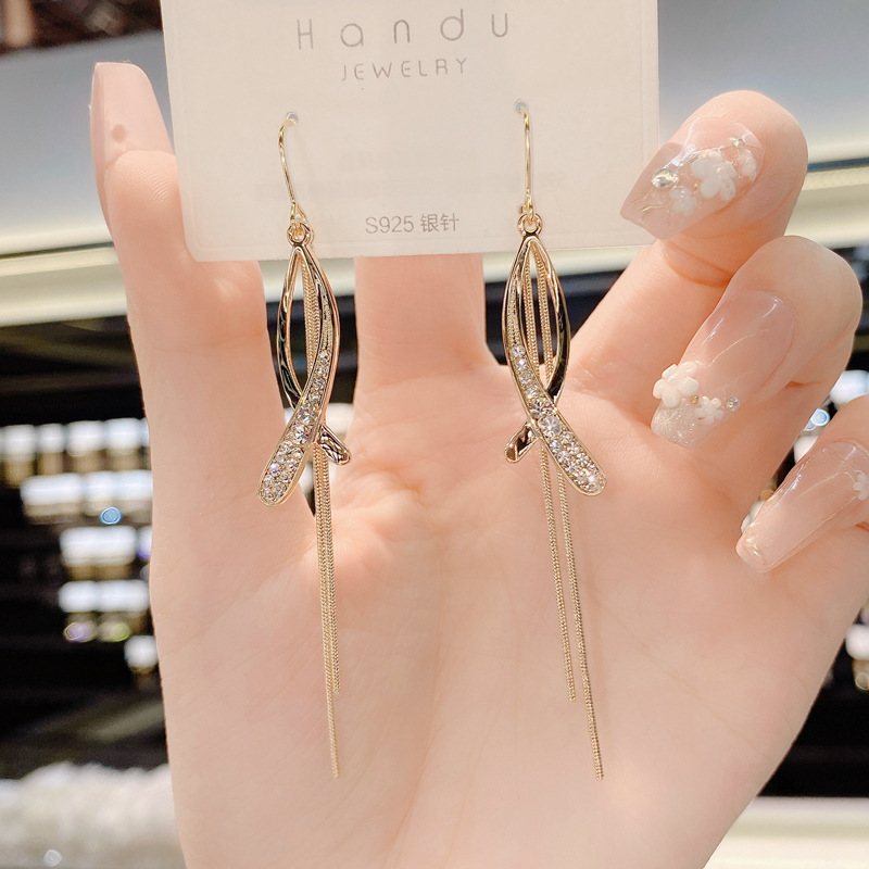 韩国东大门微镶锆石交叉流苏耳环女气质百搭长款耳坠时尚显瘦耳钩