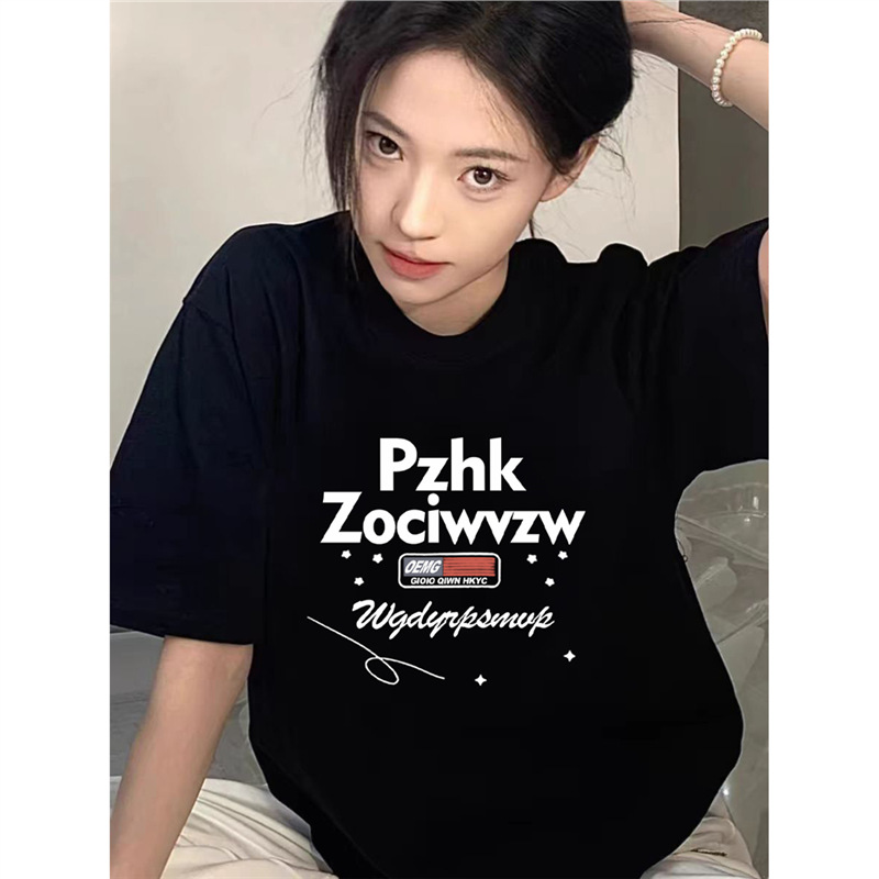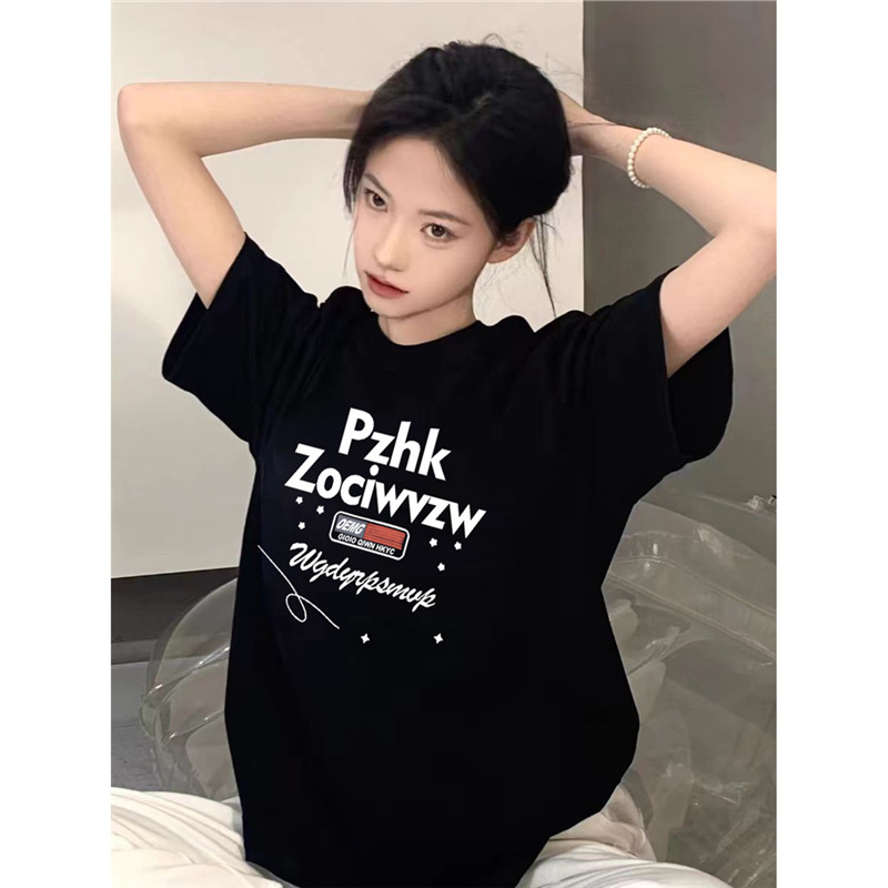 夏季纯棉短袖t恤女新款爆款正肩设计感小众美式宽松半袖上衣