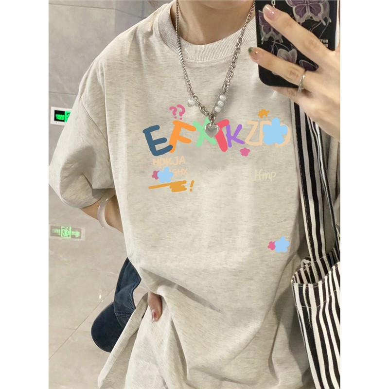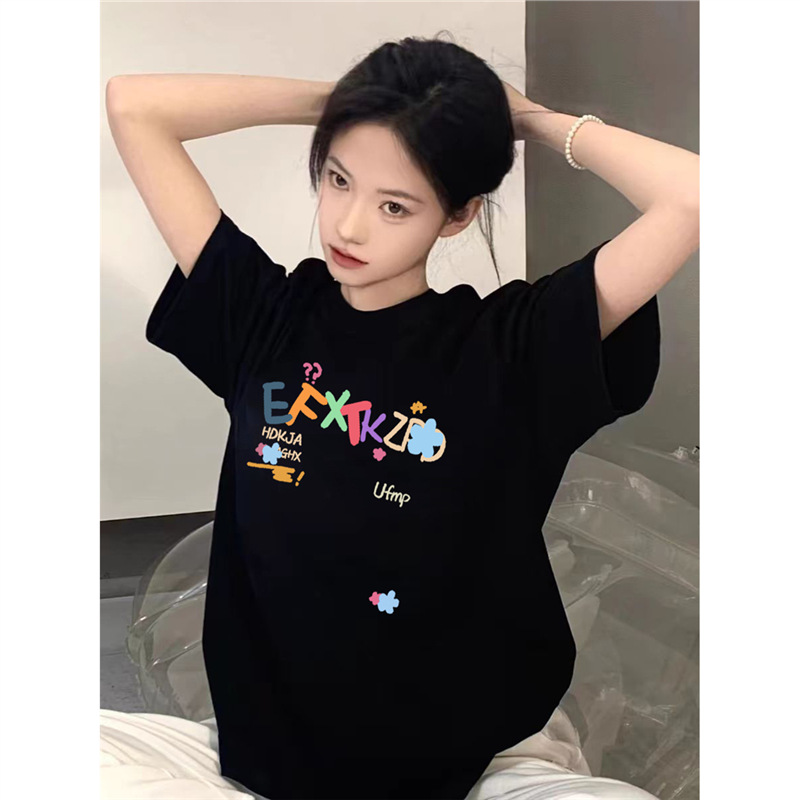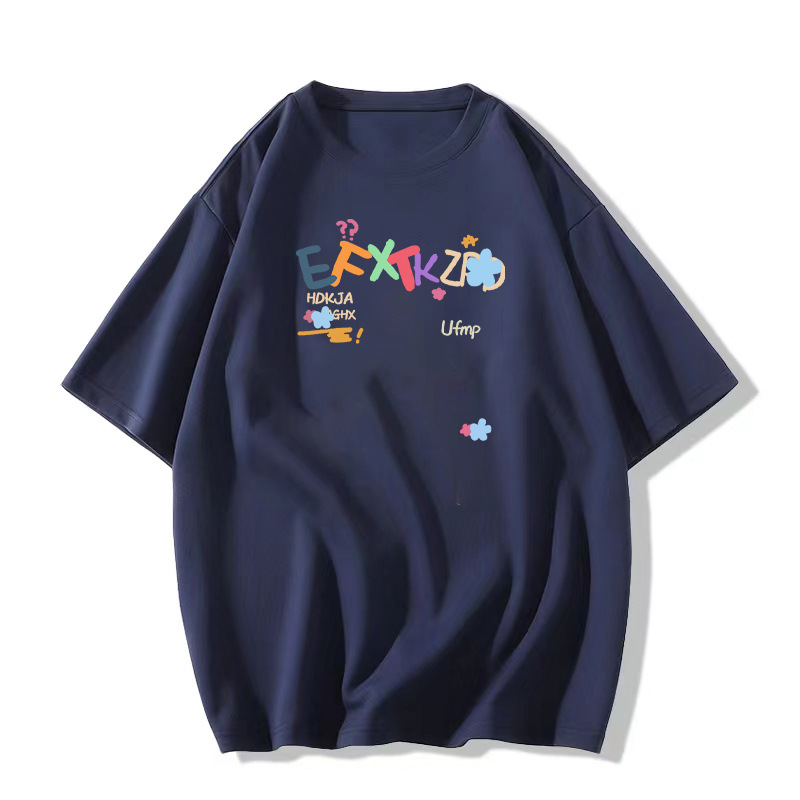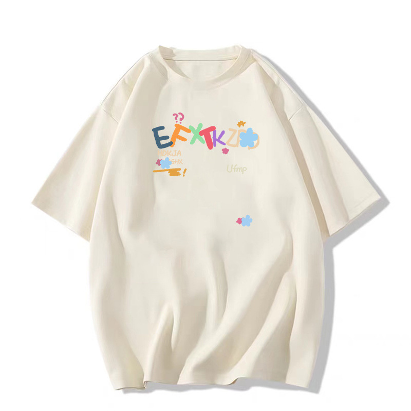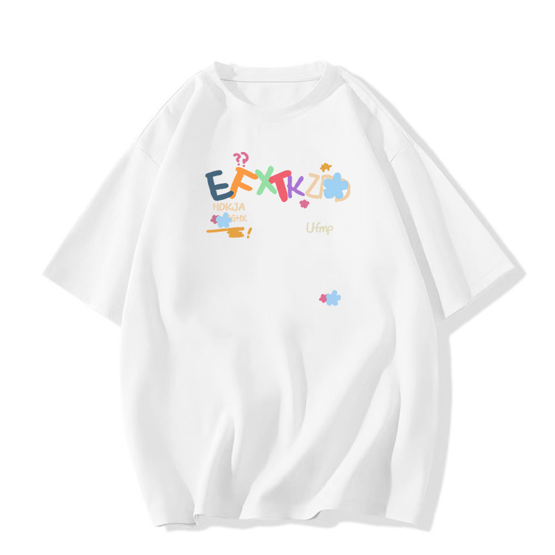 夏季新款美式潮牌字母卡通印花短袖T恤男生ins潮牌风宽松休闲上衣