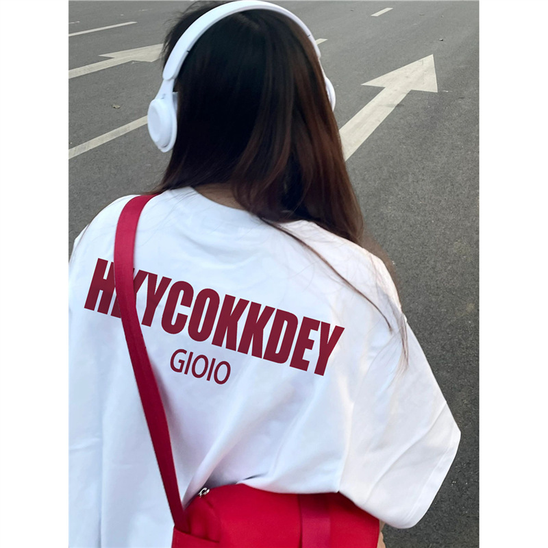 纯棉正肩短袖t恤女新款夏季白色设计感小众美式宽松半袖上衣