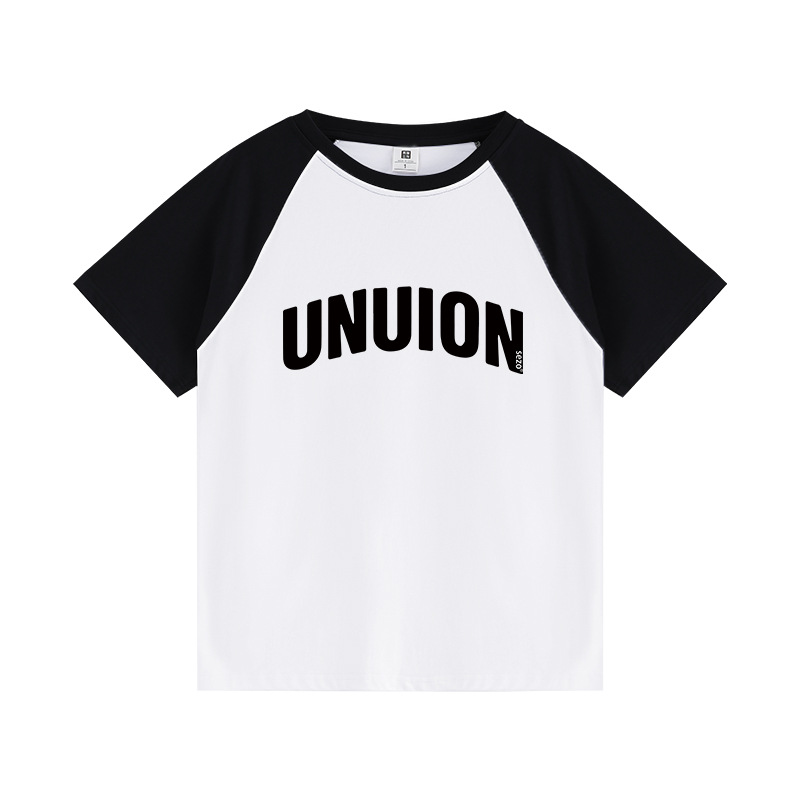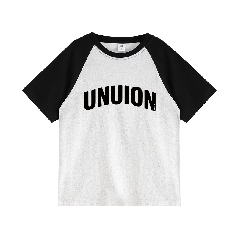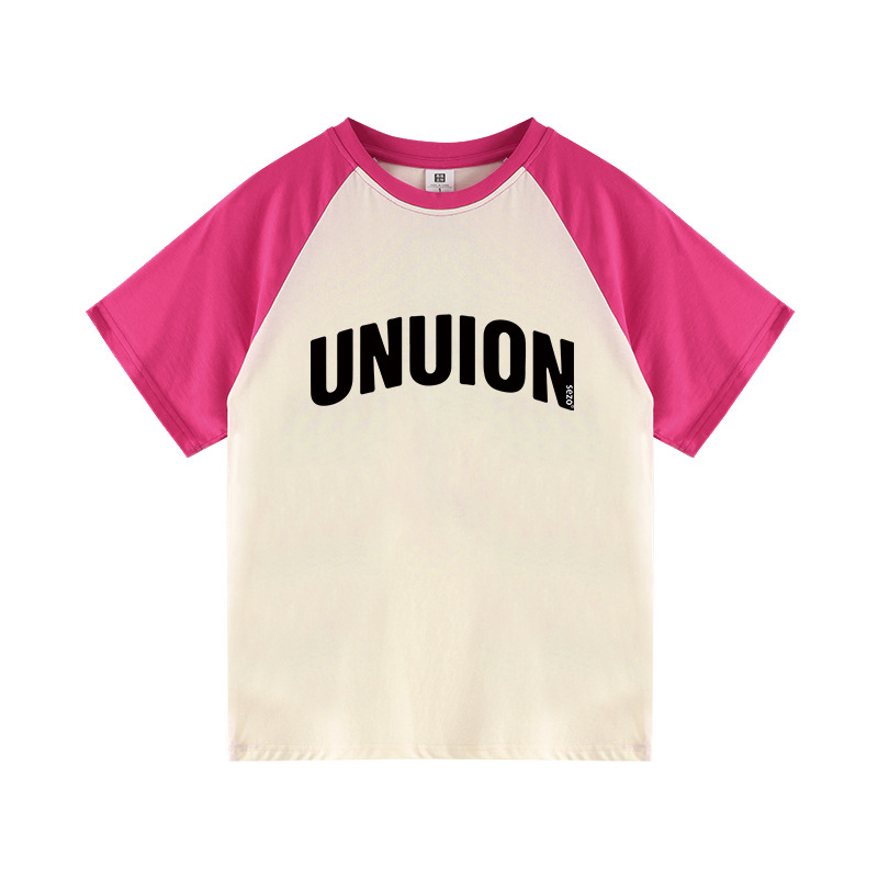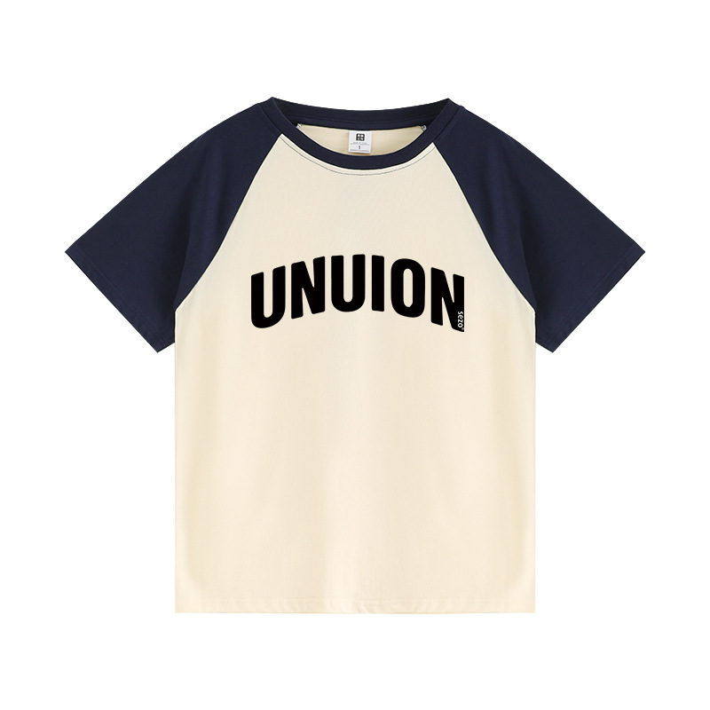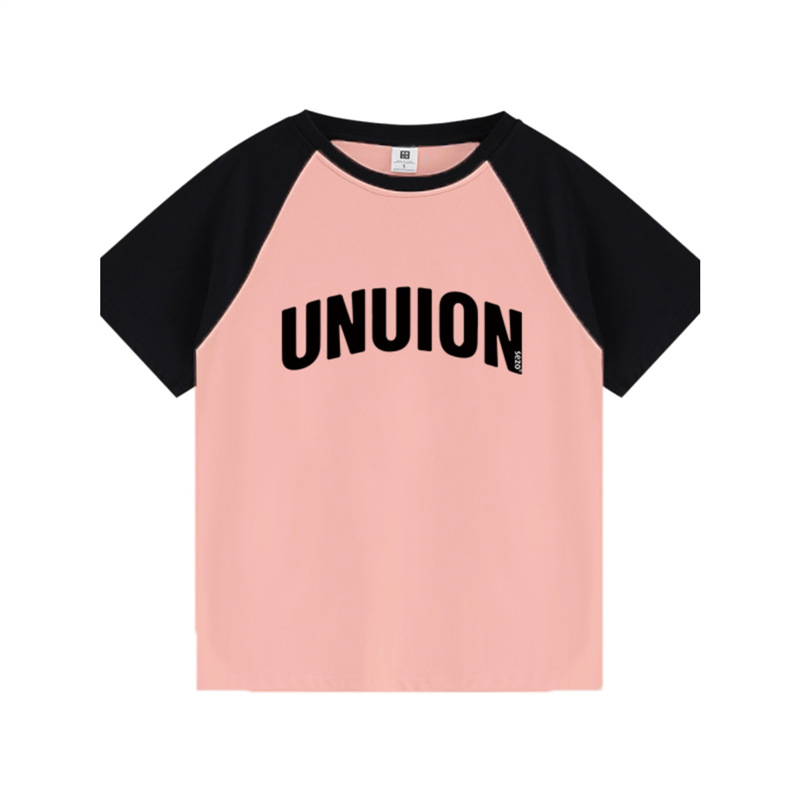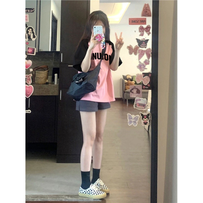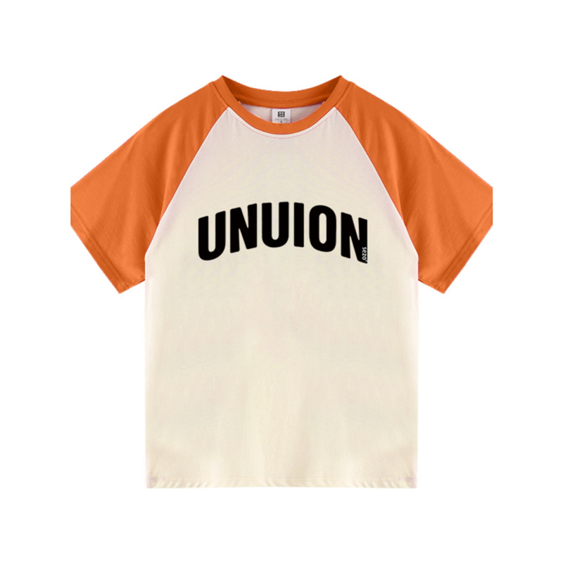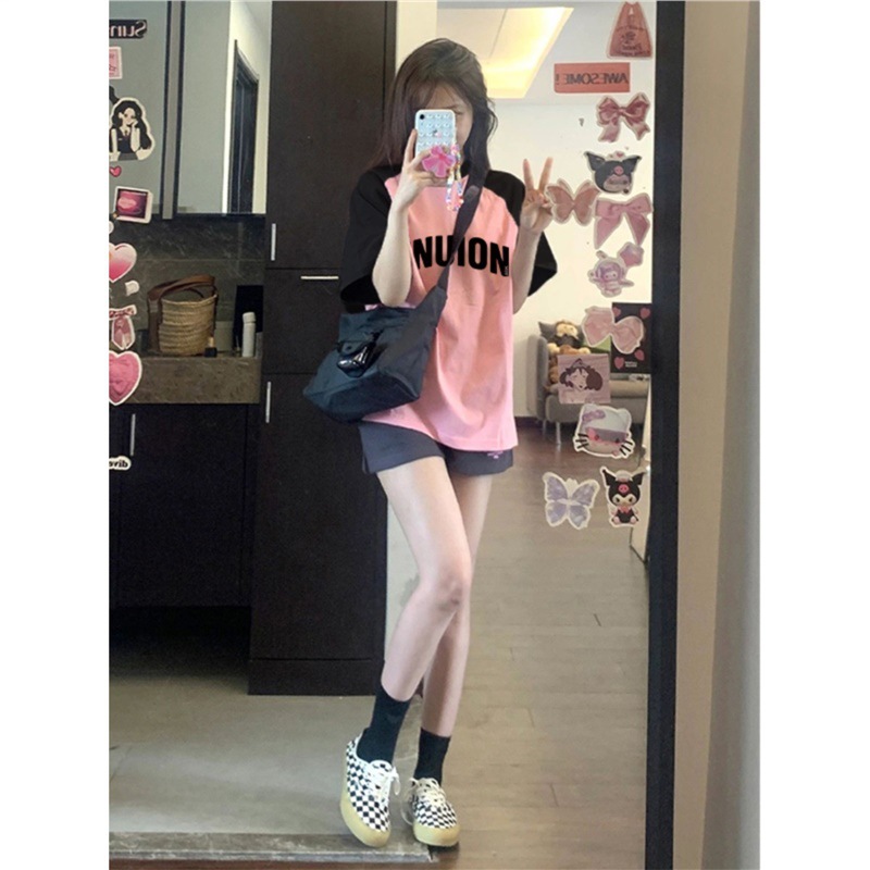 插肩撞色纯棉短袖t恤女夏季新款小众设计感印花宽松半袖上衣
