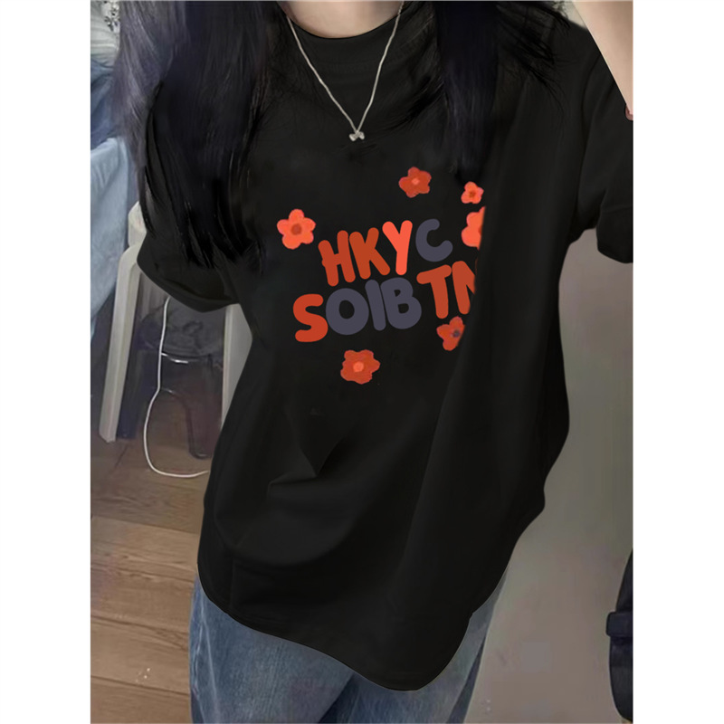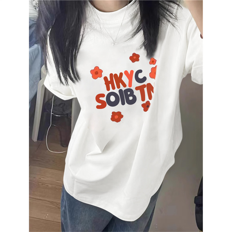 夏季正肩纯棉短袖t恤女新款设计感小众美式宽松显瘦半袖上衣