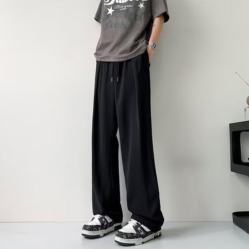 黑色休闲裤男士夏季新款宽松直筒长裤潮流百搭松紧腰休闲风长裤子