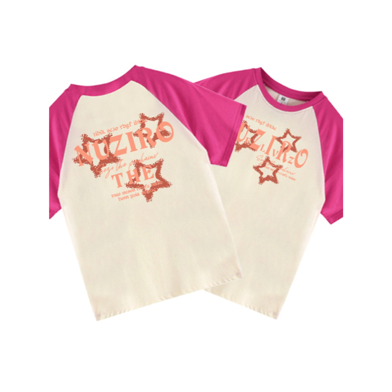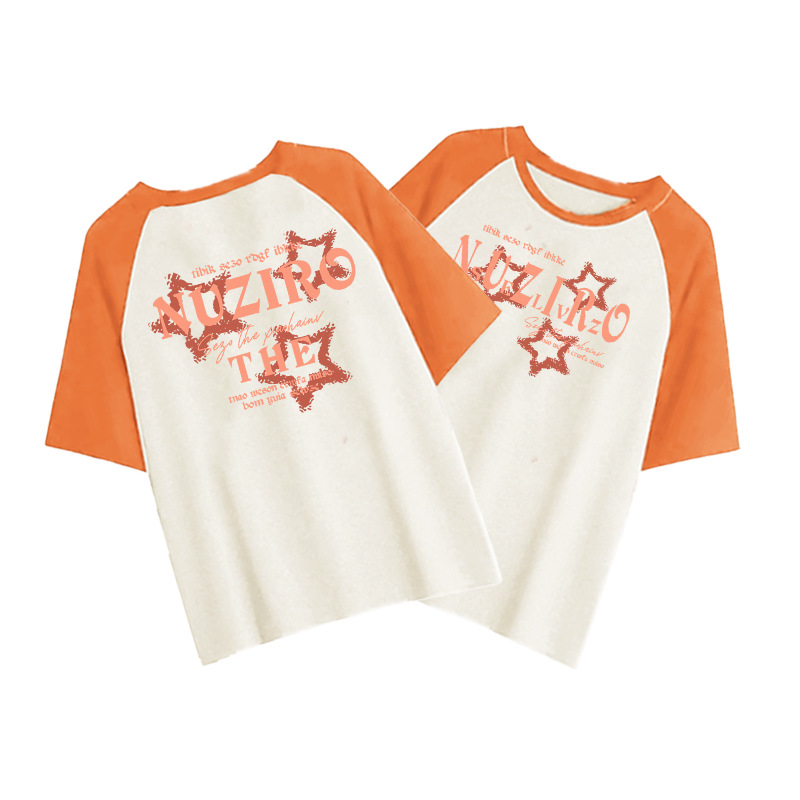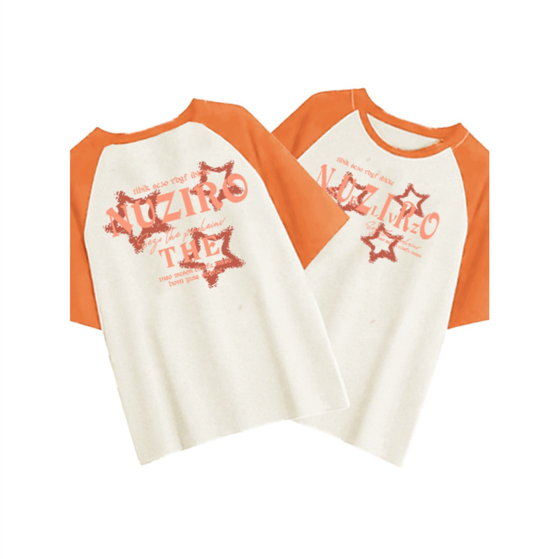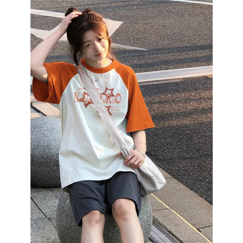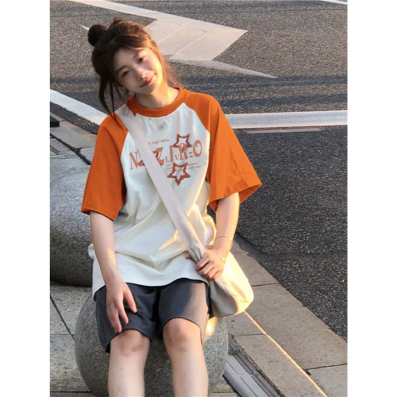 橘色插肩t恤女新款夏季拼色设计感小众洋气减龄独特别致上衣