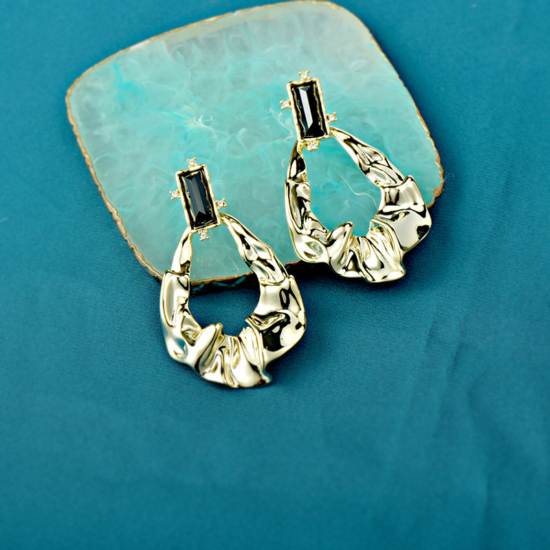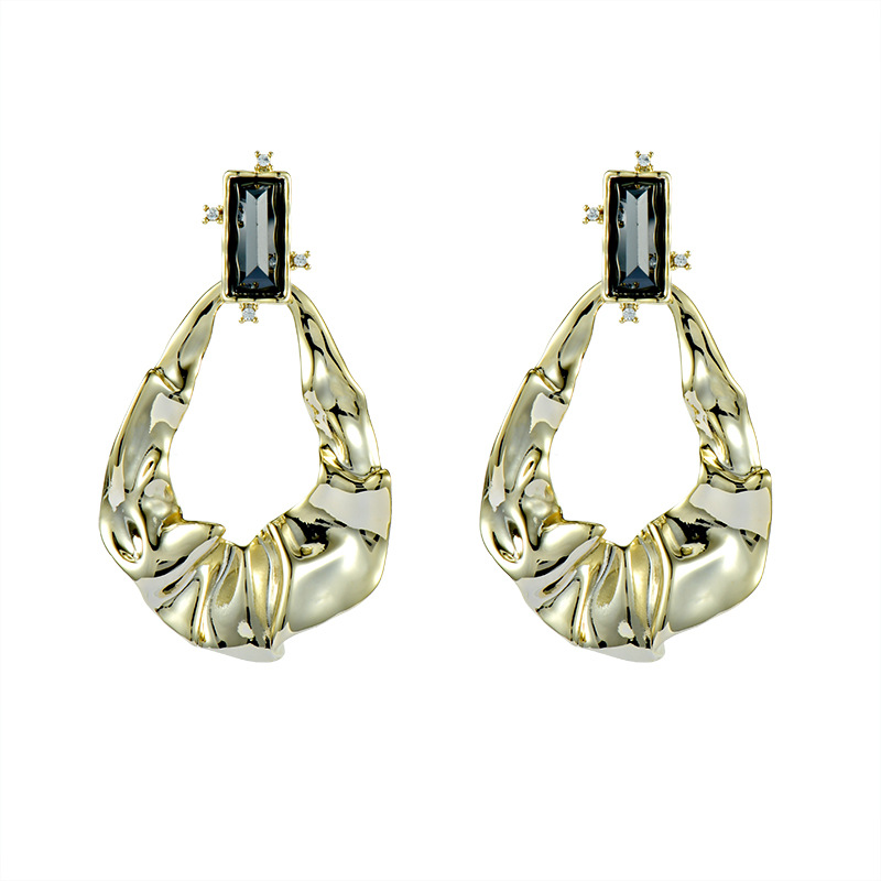 欧美夸张设计师褶皱耳环水滴形金属高质量时尚耳饰批发银针耳钉女
