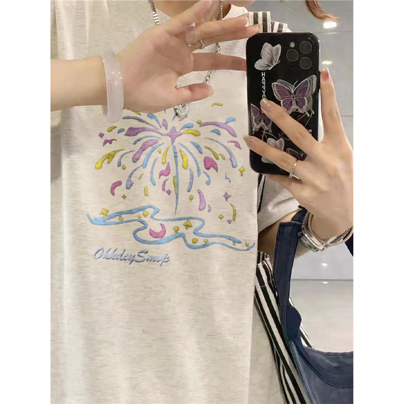 短袖t恤女美式 夏季新款粉色半袖体恤小众设计感圆领上衣潮牌