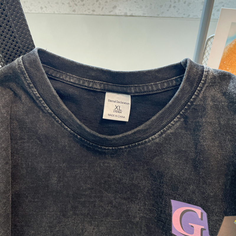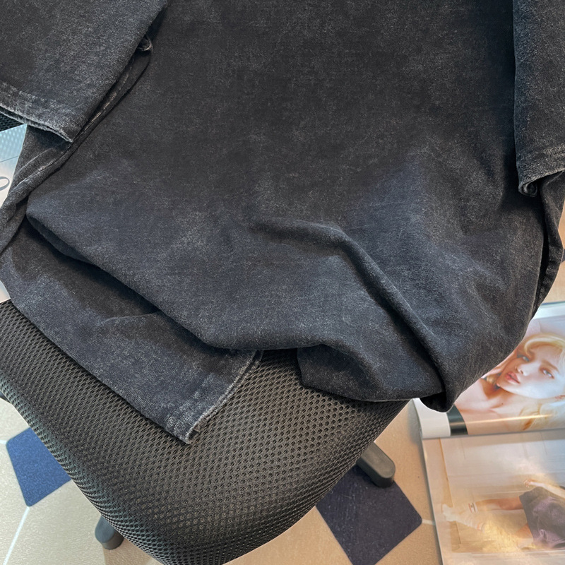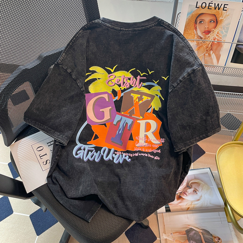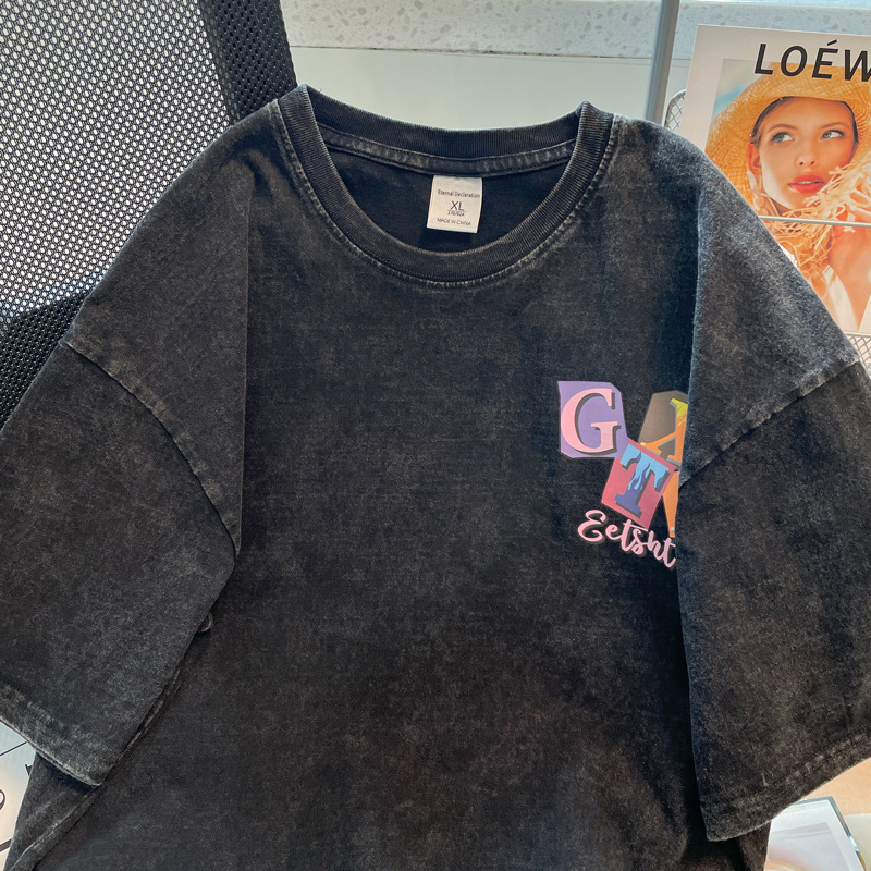 新款水洗做旧纯棉t恤女夏复古灰短袖oversize宽松上衣情侣装