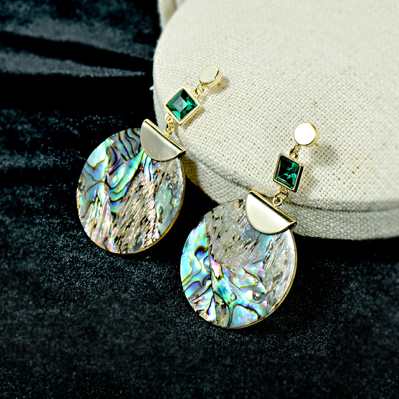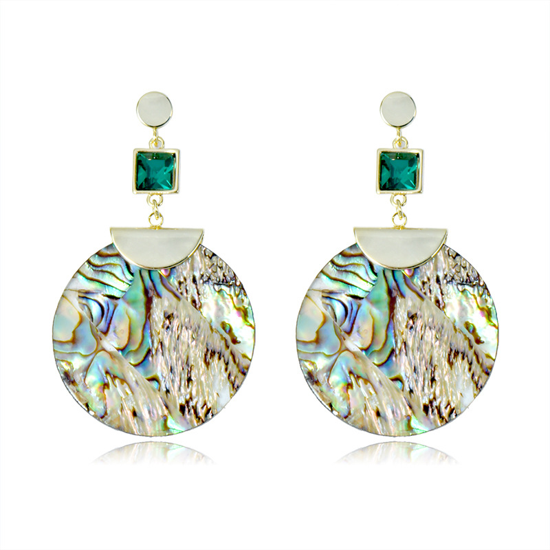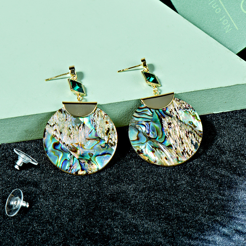 欧美时尚洋气大耳环女潮圆形气质轻奢复古鲍鱼贝壳耳饰