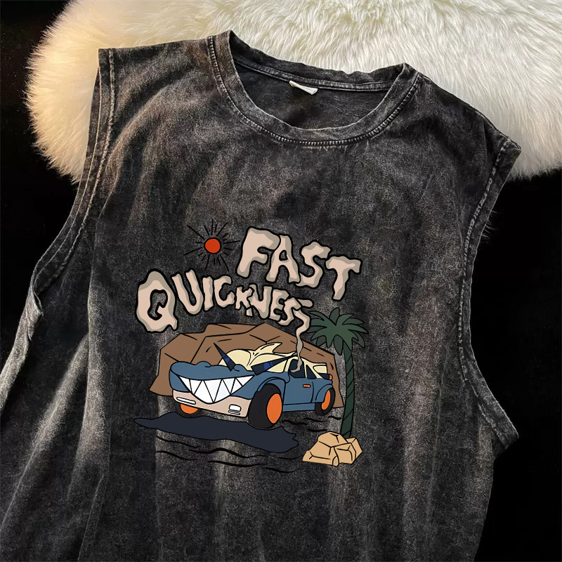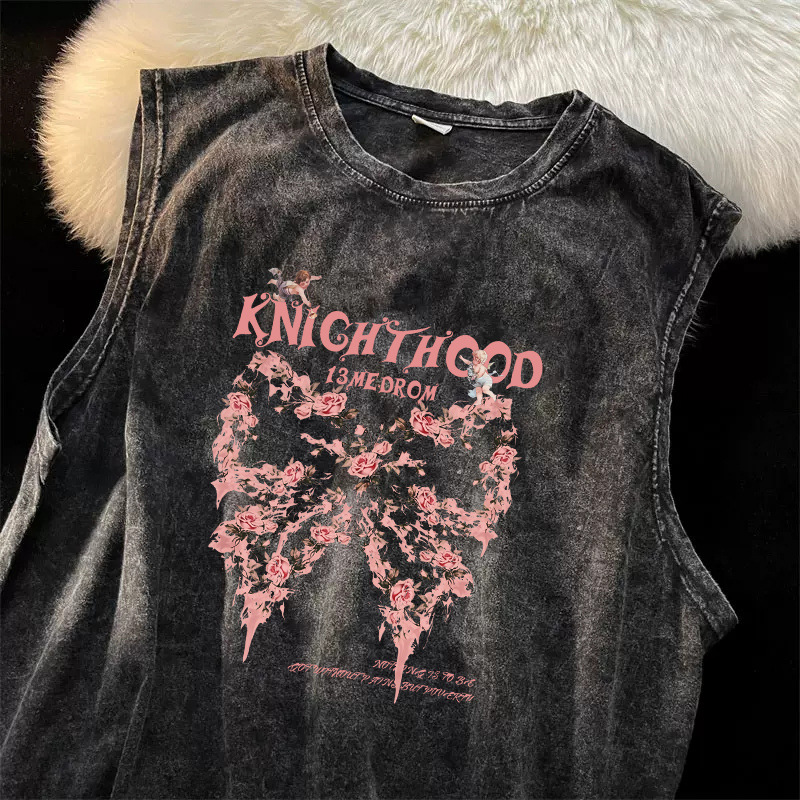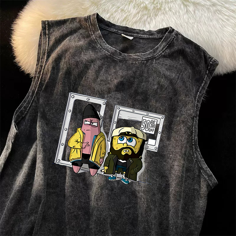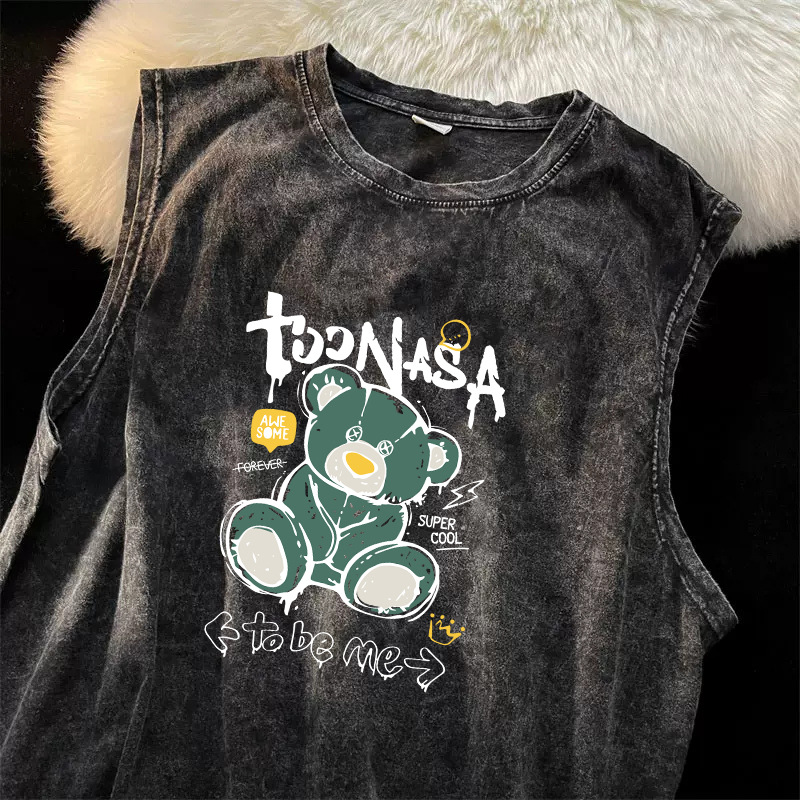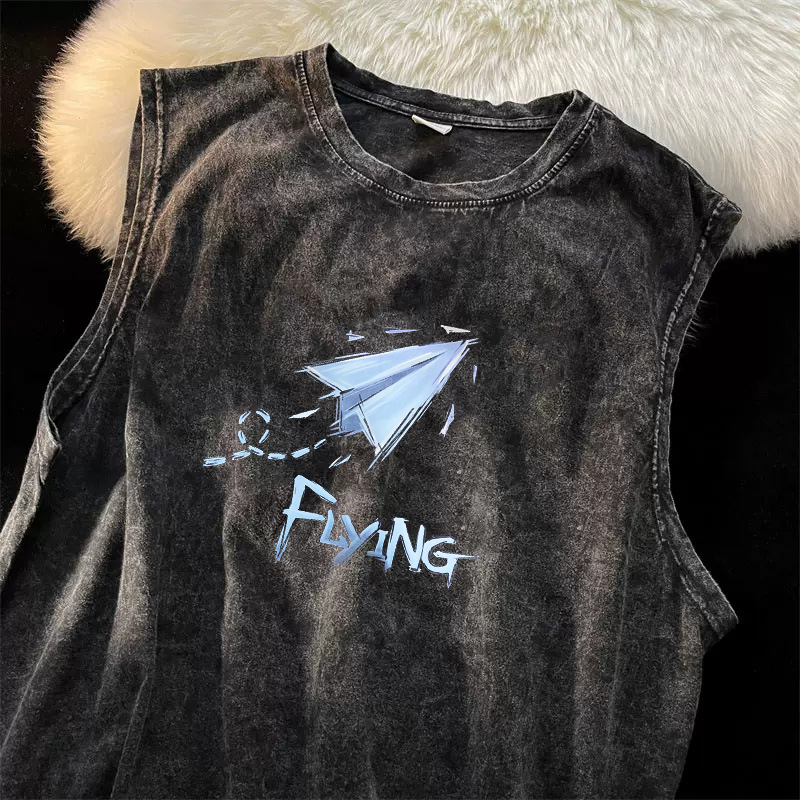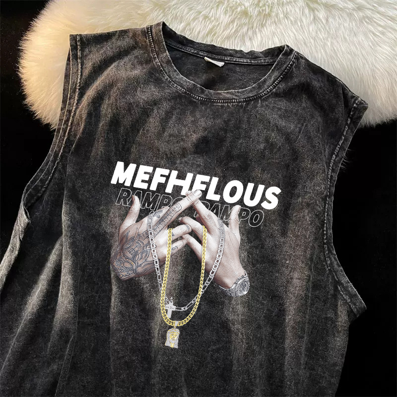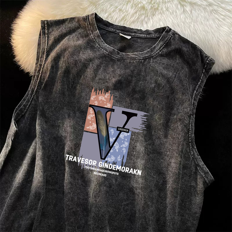 潮牌坎肩无袖t恤男士夏季ins高街水洗做旧纯棉背心外穿马甲潮情侣