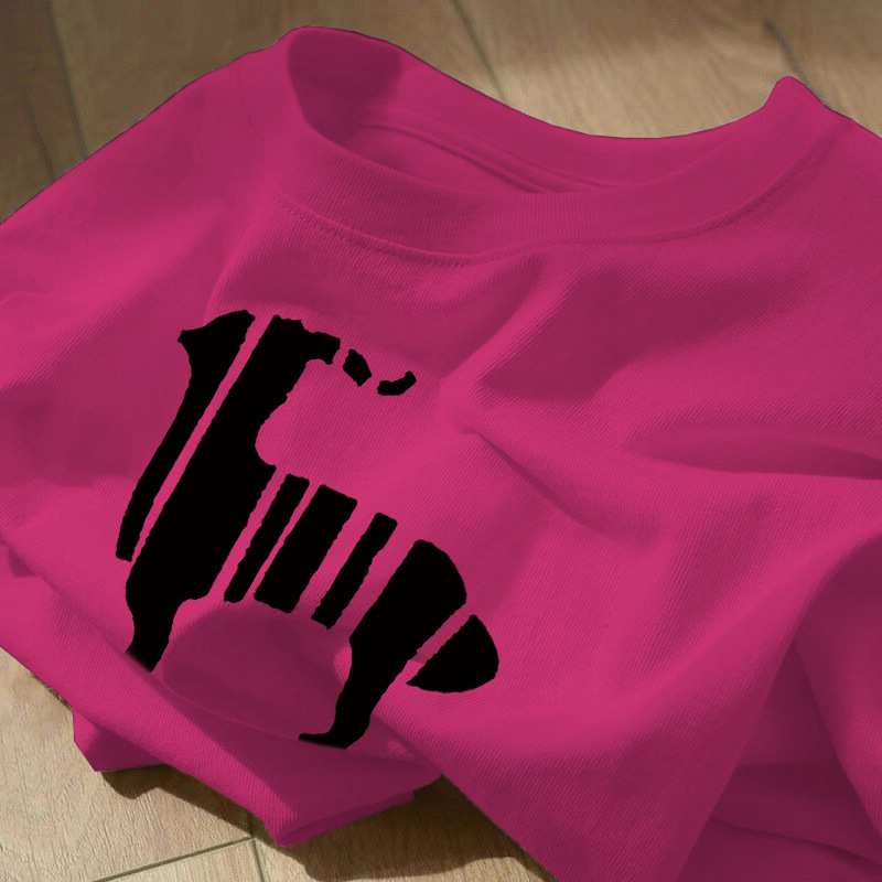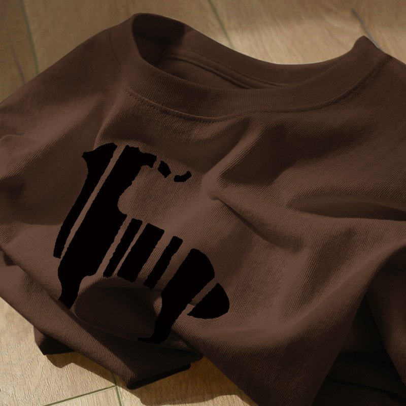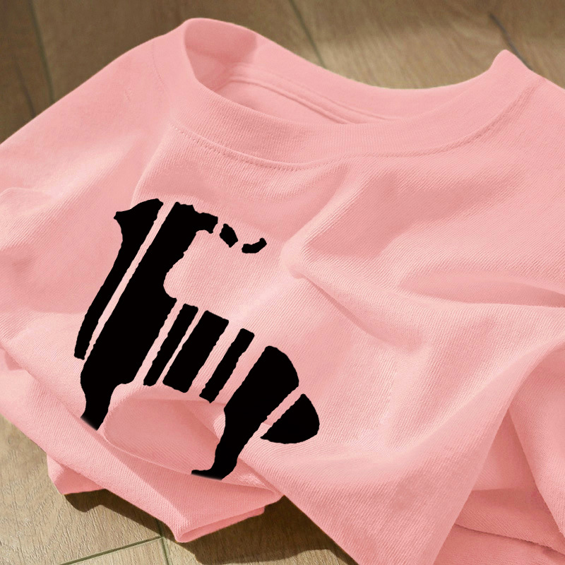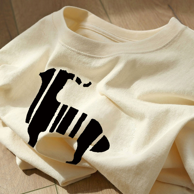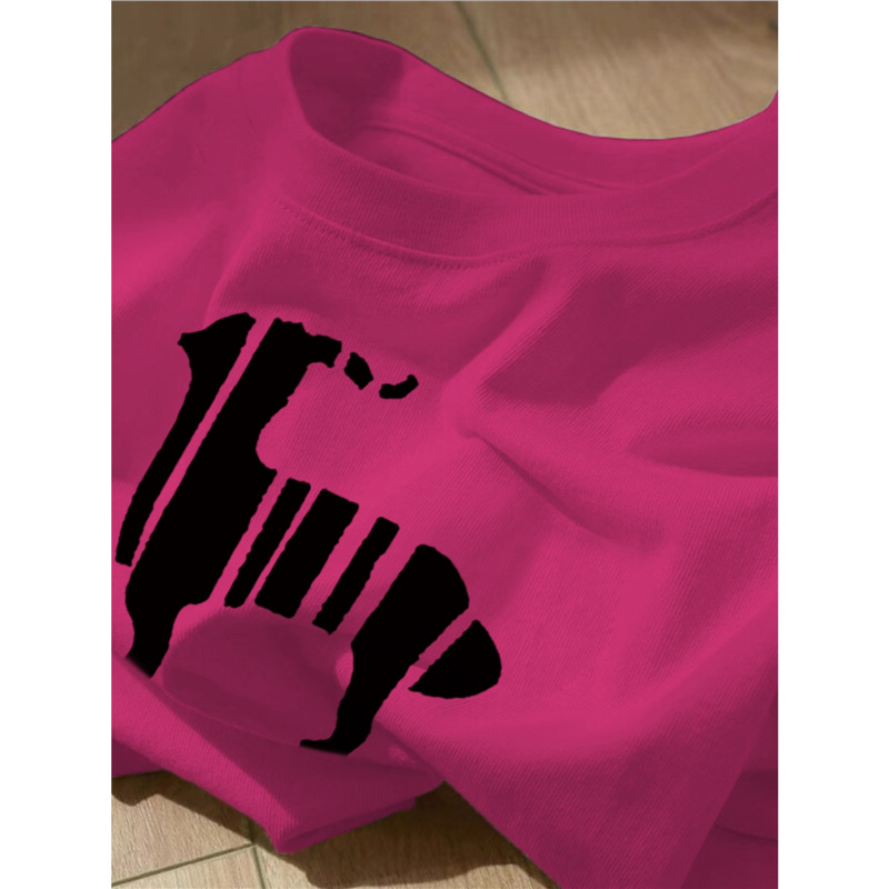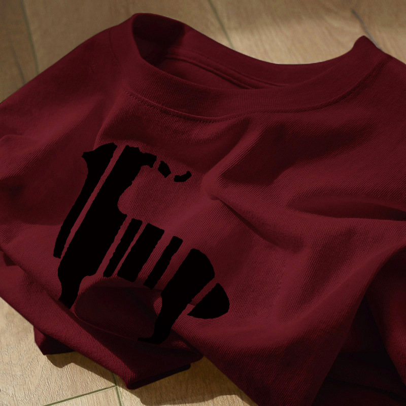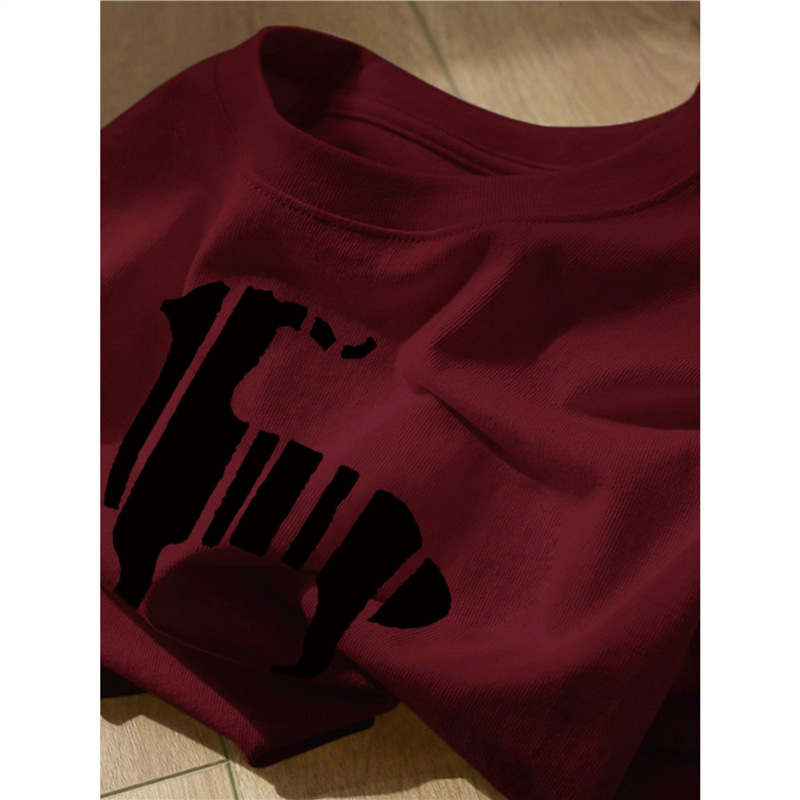 宽松正肩短袖上衣服女生夏季小众酒红色甜酷风chic印花纯棉t恤衫