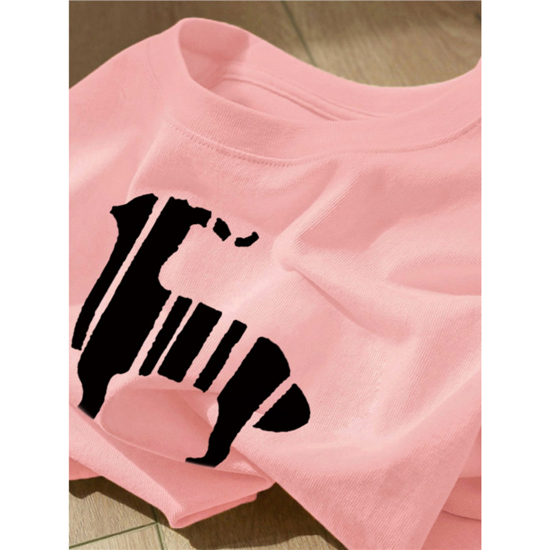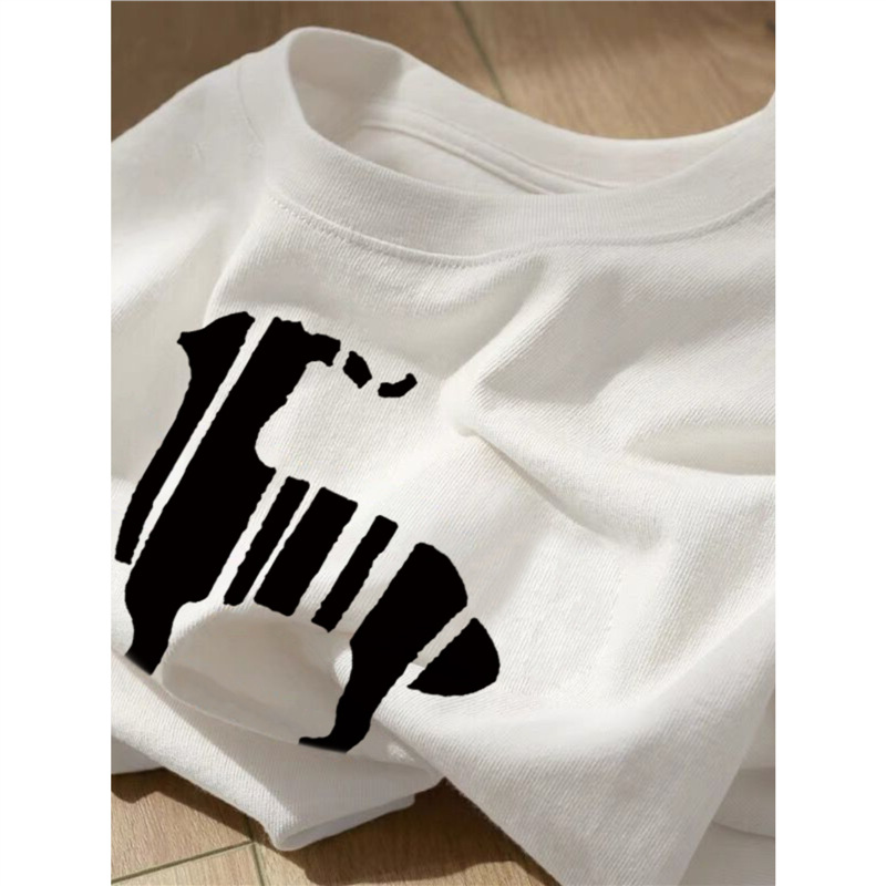 2025夏季新款灰色纯棉短袖t恤女宽松百搭卡通印花时尚减龄上衣潮