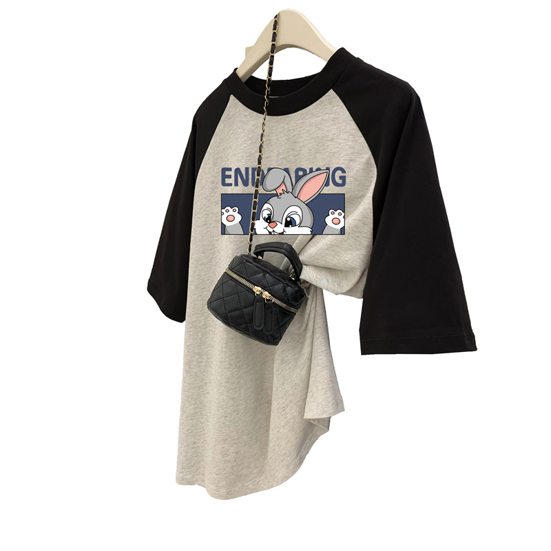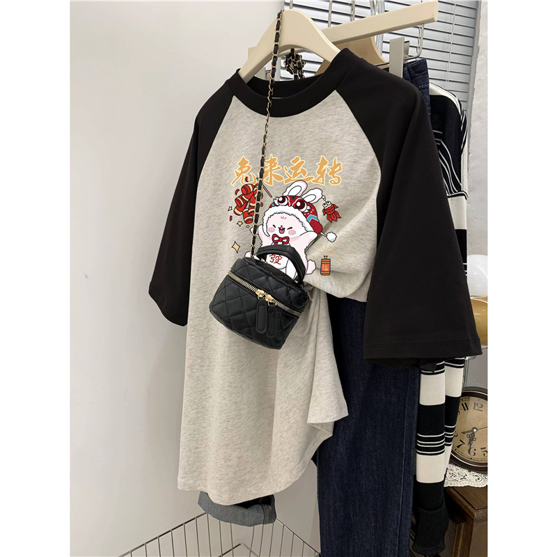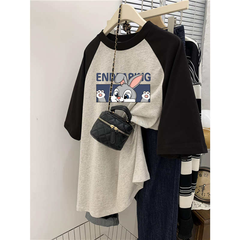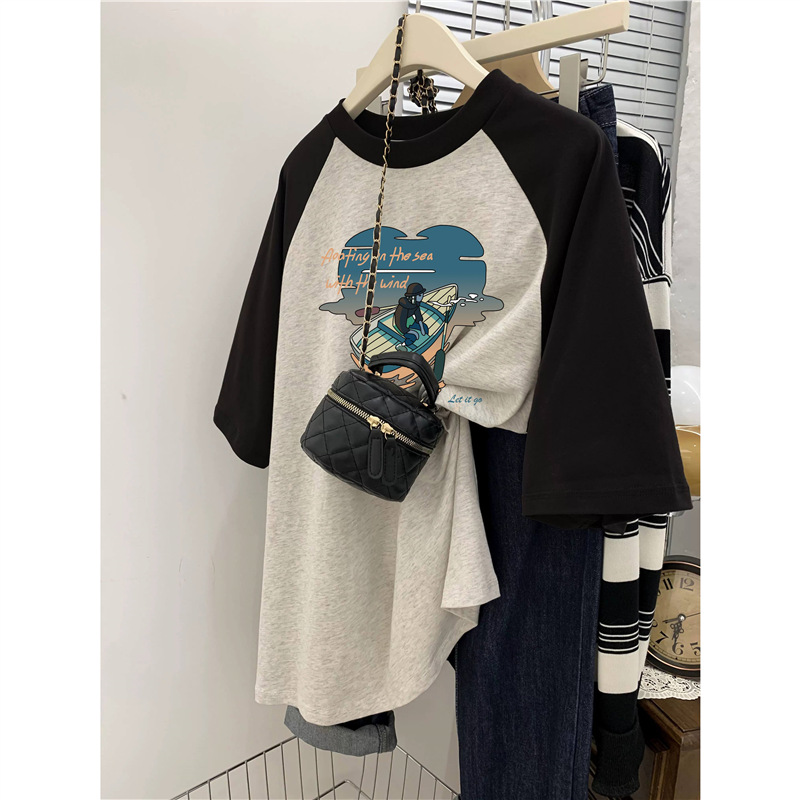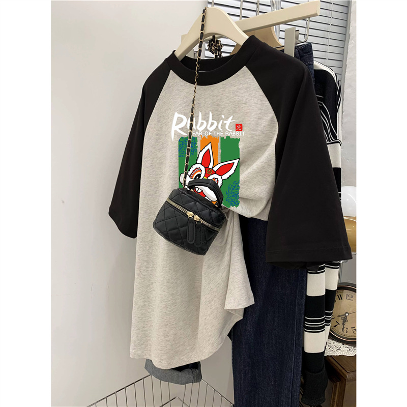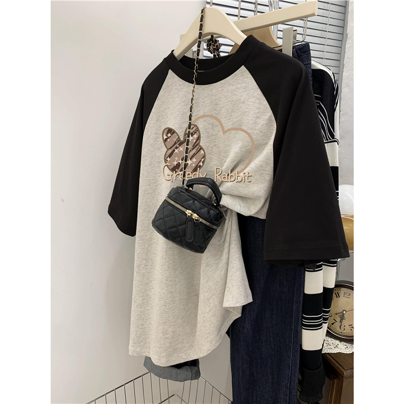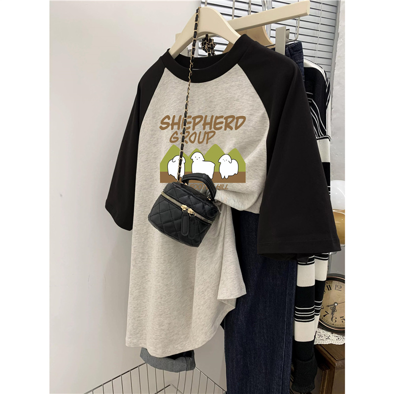 胖mm插肩纯棉短袖t恤女夏宽松oversize遮肚上衣藏肉大码女装