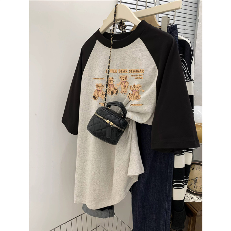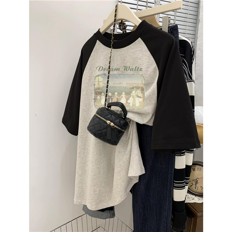 夏季纯棉短袖t恤女新款爆款正肩设计感小众美式宽松半袖上衣