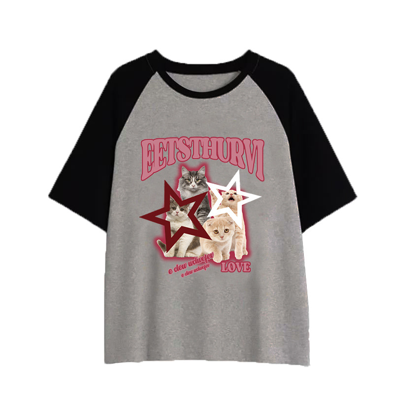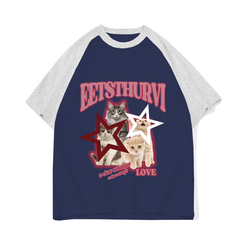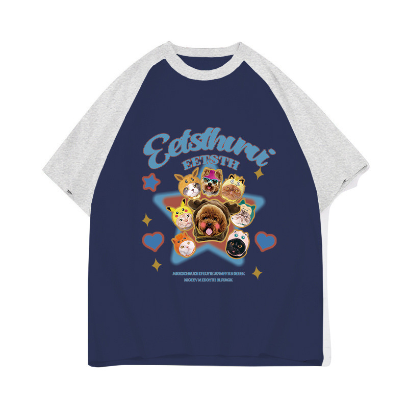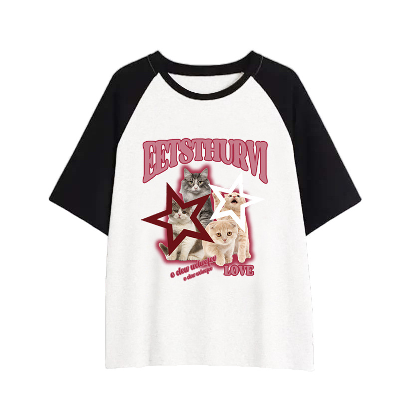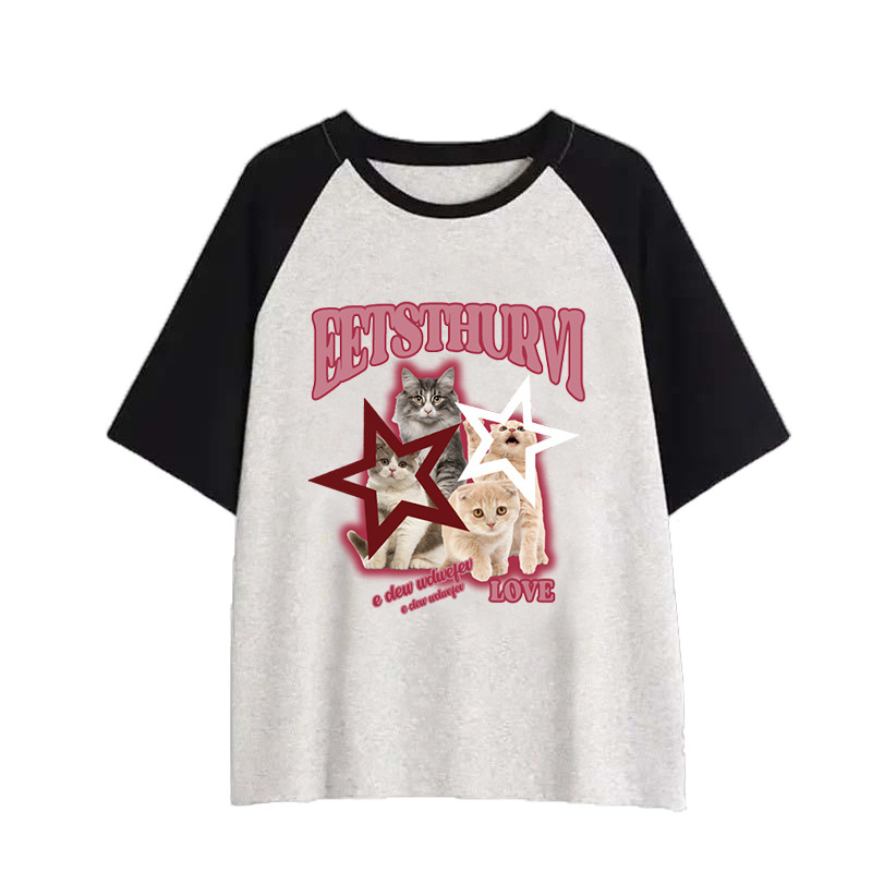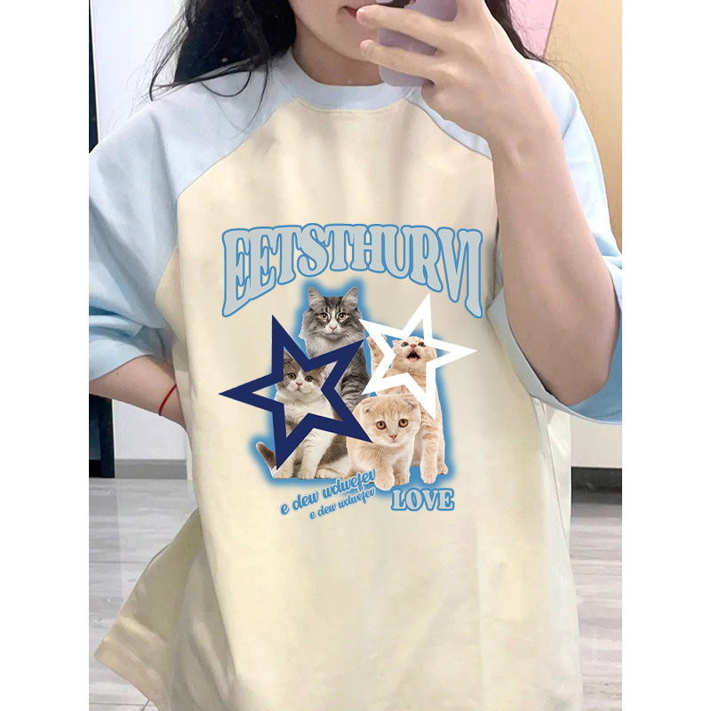 重磅纯棉拼色插肩短袖T恤女夏季宽松多巴胺穿搭甜酷情侣半袖上衣