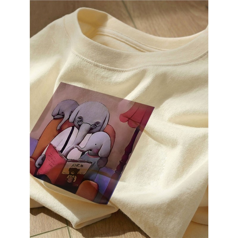 火龙果懒人T 显白韩版后背贴布宽松卷边短袖女百搭休闲纯棉上衣服