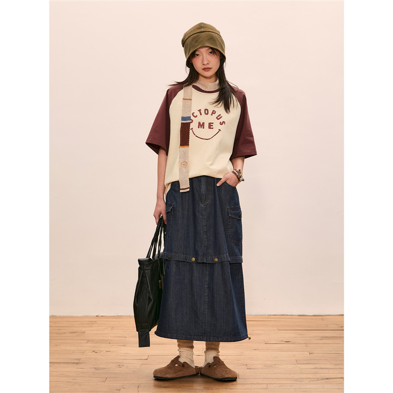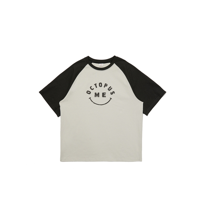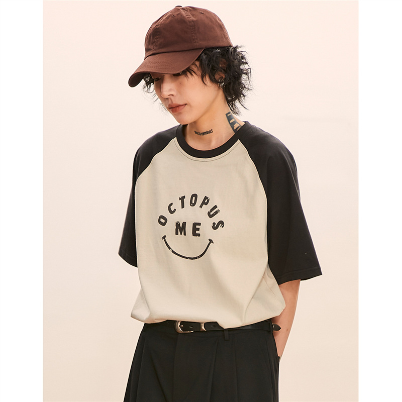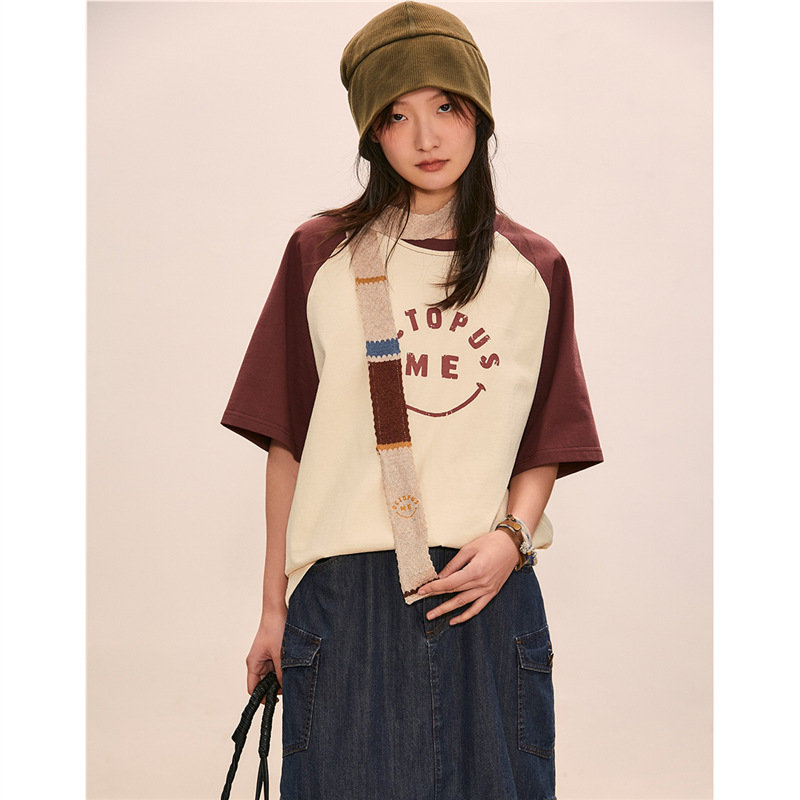 美式复古字母印花插肩袖t恤短袖女设计感半袖tee