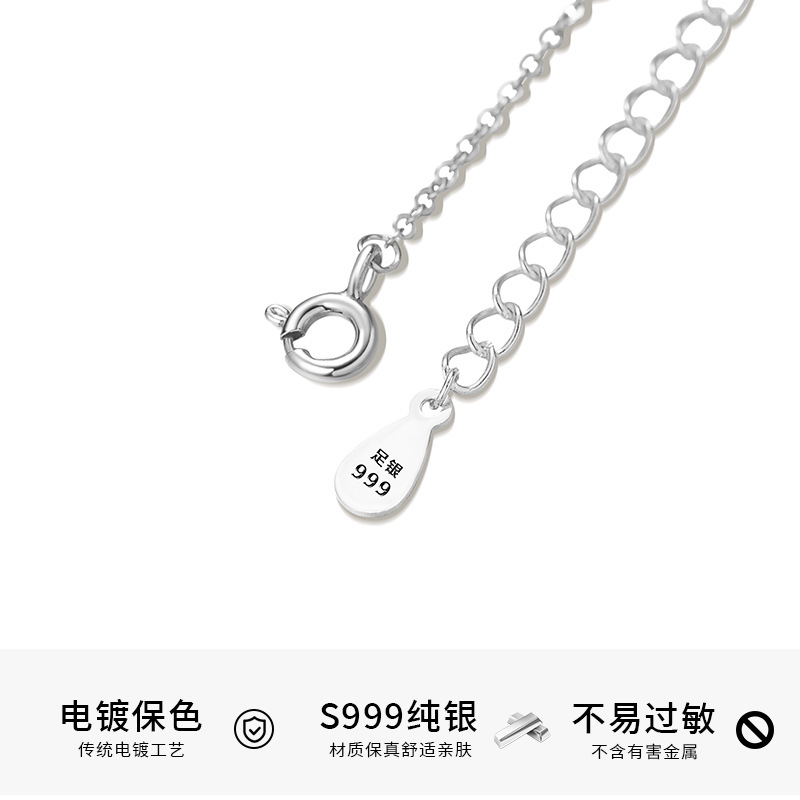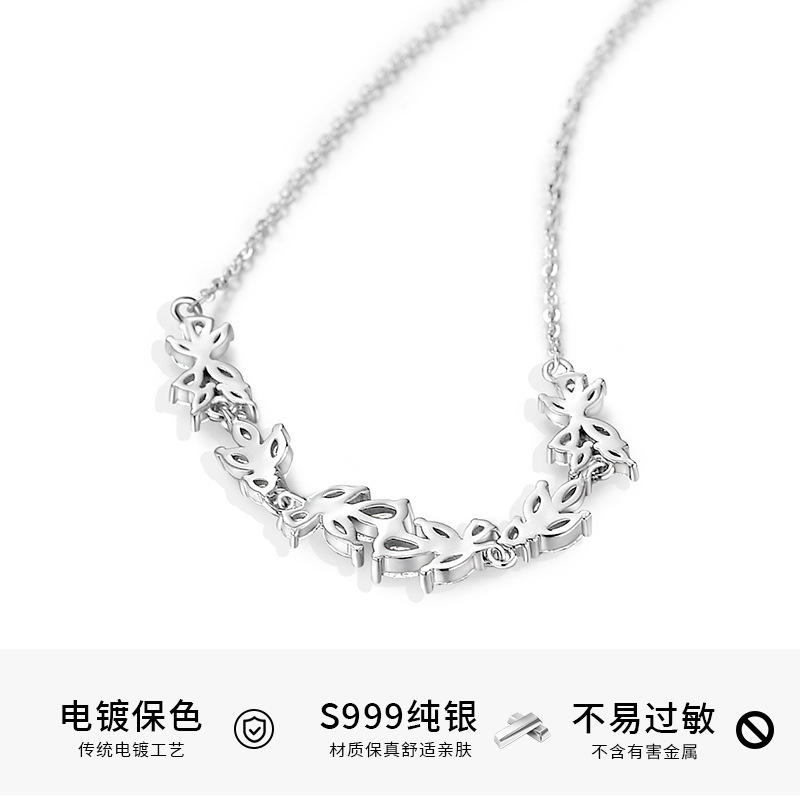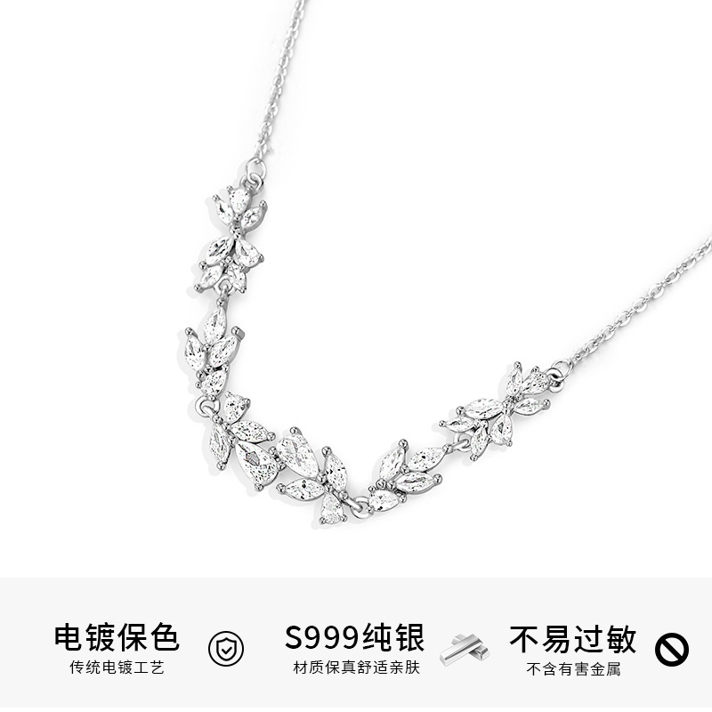 S999纯银镶钻树叶项链锆石花朵锁骨链超仙森系年新款颈链