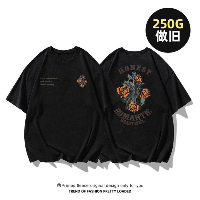 美式情侣装印花短袖T恤男生夏季无性别欧美街头潮牌宽松半袖