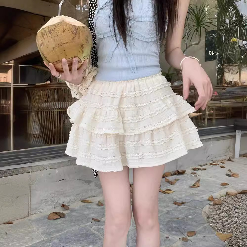 芭蕾风白色蓬蓬裙半身裙女装夏季小个子短裙甜美裙子A字裙蛋糕裙