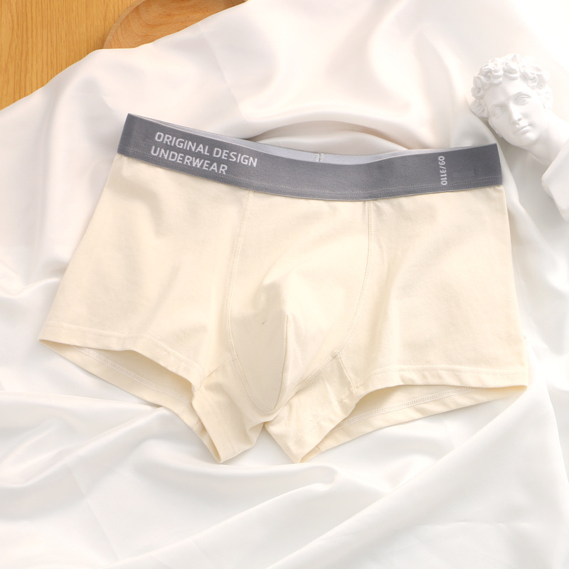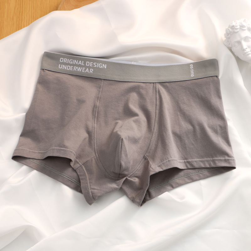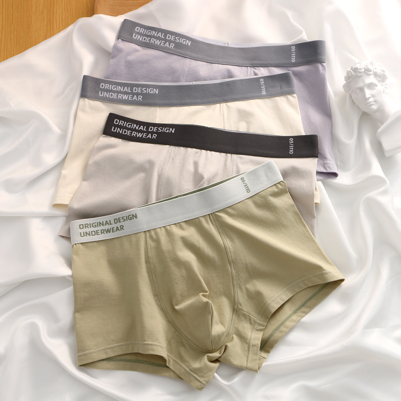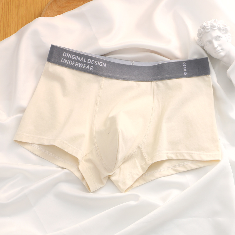 夏季男士内裤纯棉平角裤男生四角裤透气中腰短裤头纯色青年底裤衩