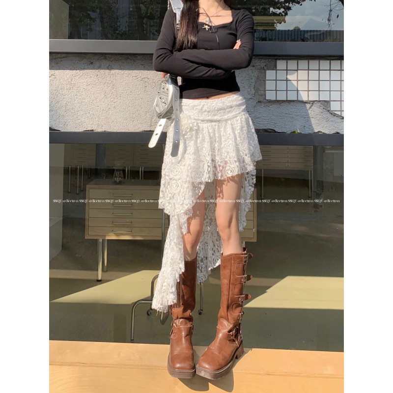 不规则下摆法式气质蕾丝半身裙女春夏设计感波西米亚复古A字裙子