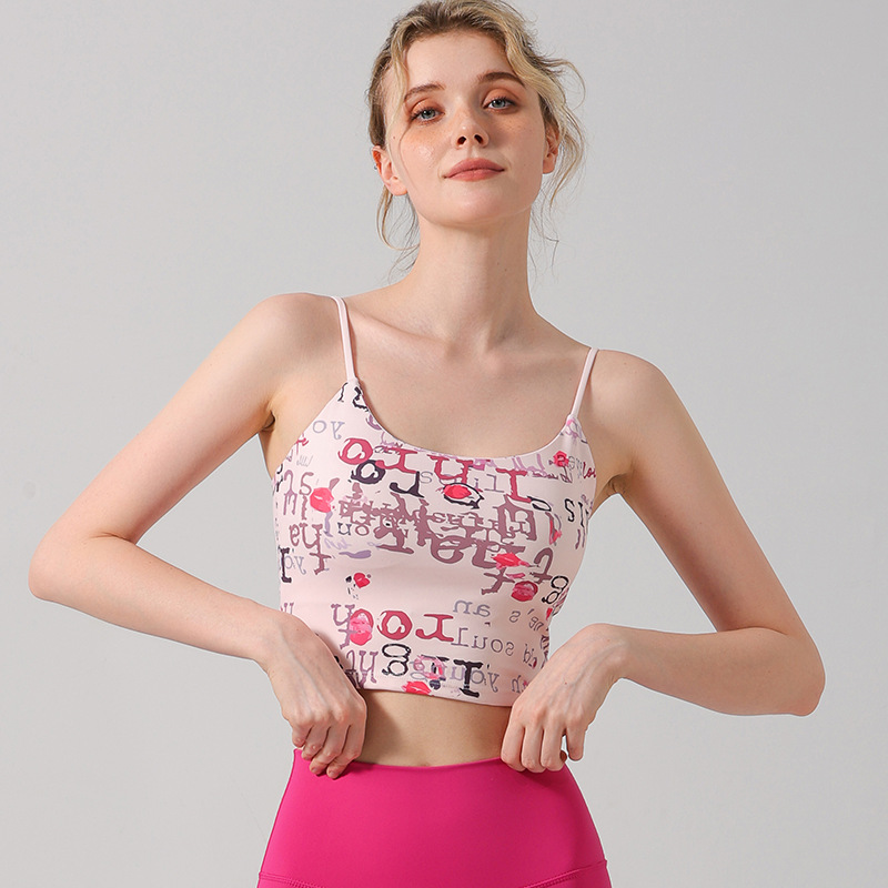 美式复古画报印花吊带背心夏辣妹修身运动瑜伽普拉提显瘦打底套装