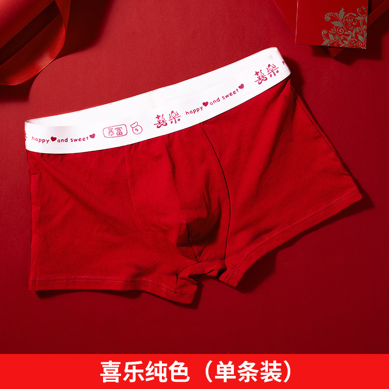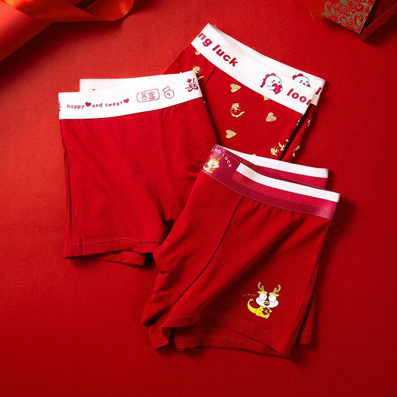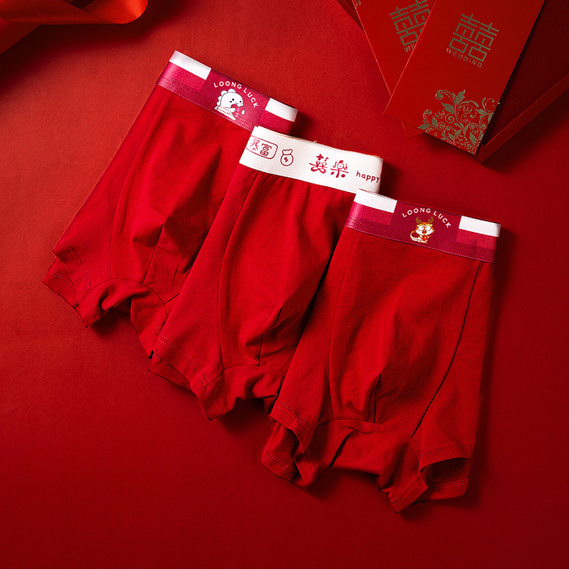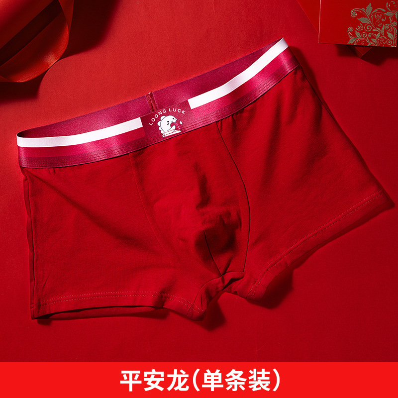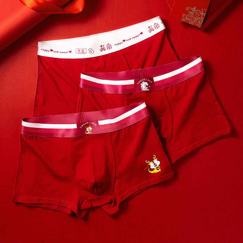 男士内裤男纯棉红内裤本命年龙年送男友四角裤高档裤衩平角男裤头