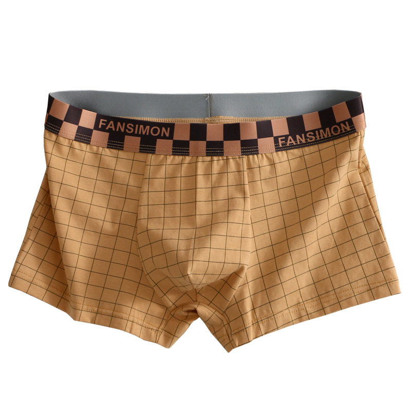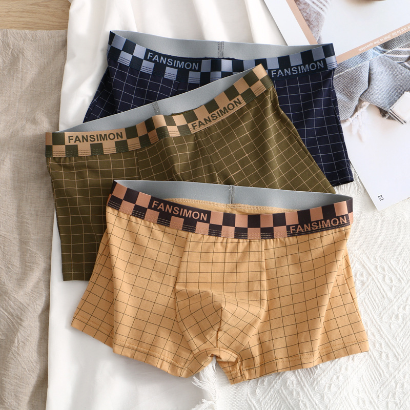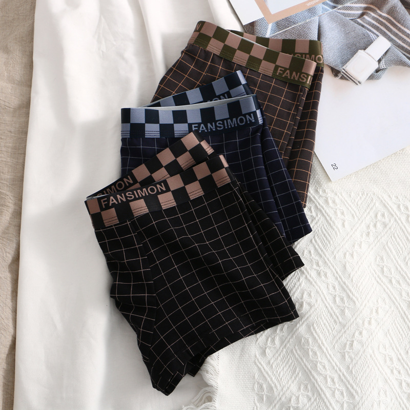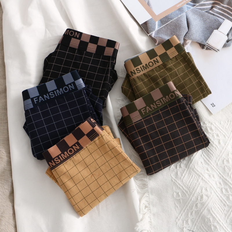 新款男士内裤纯棉舒适透气平角裤潮流格子青年中腰大码男生四角裤