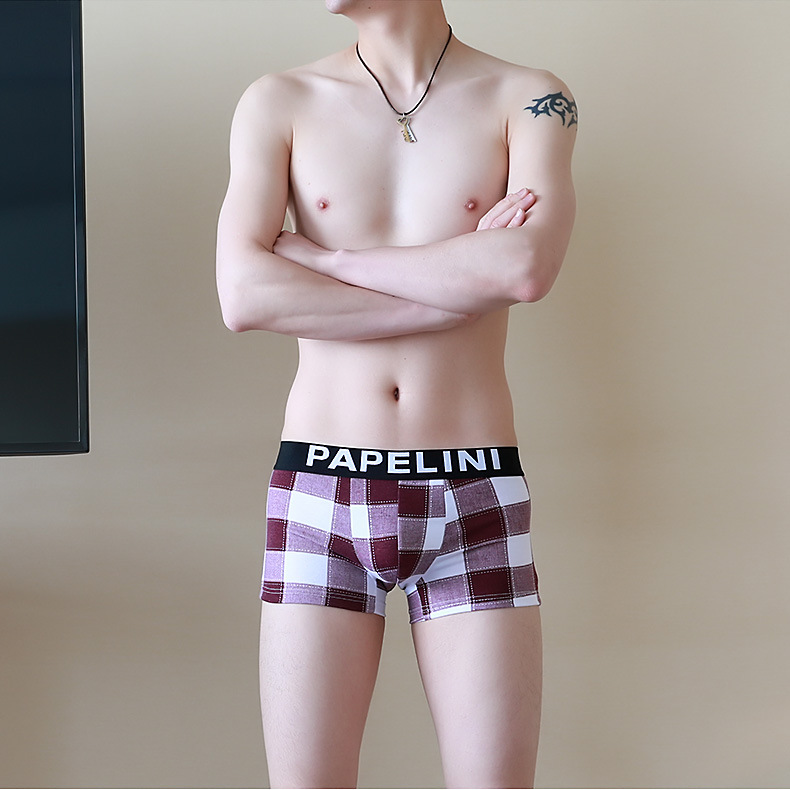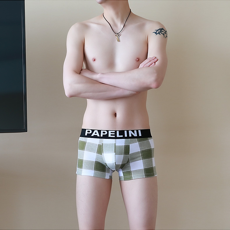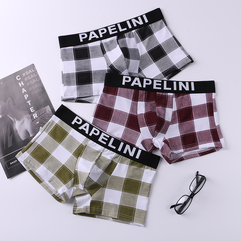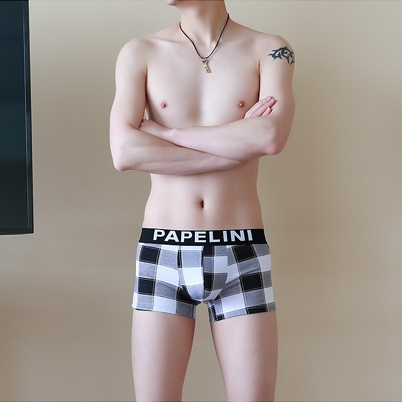 男士内裤平角裤新款潮流格子加肥加大内裤