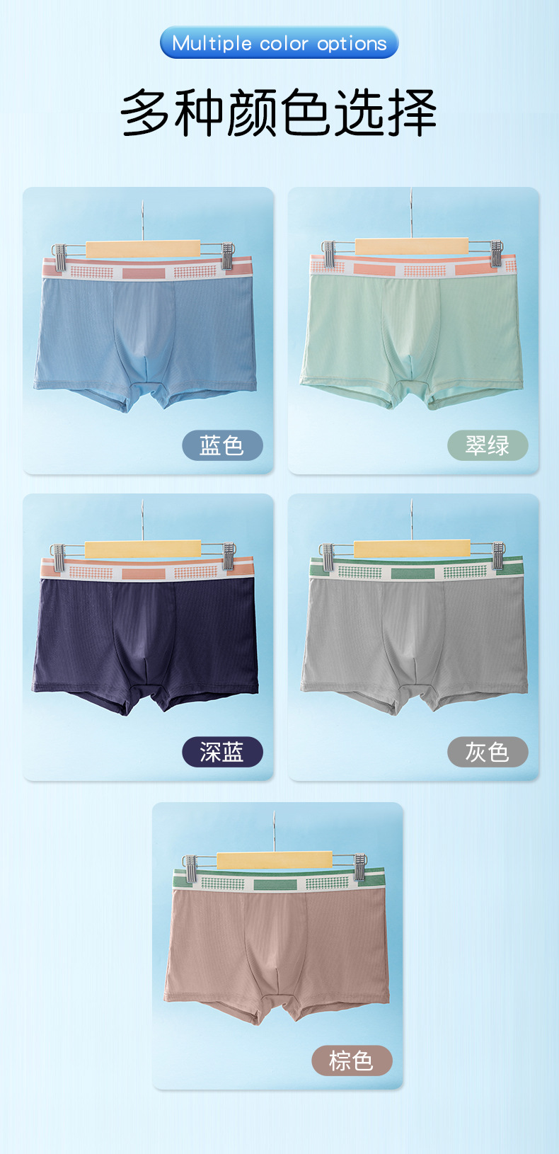 高端男士内裤男冰丝柔软平角裤磁石科技温感抗菌内档高弹四角裤头
