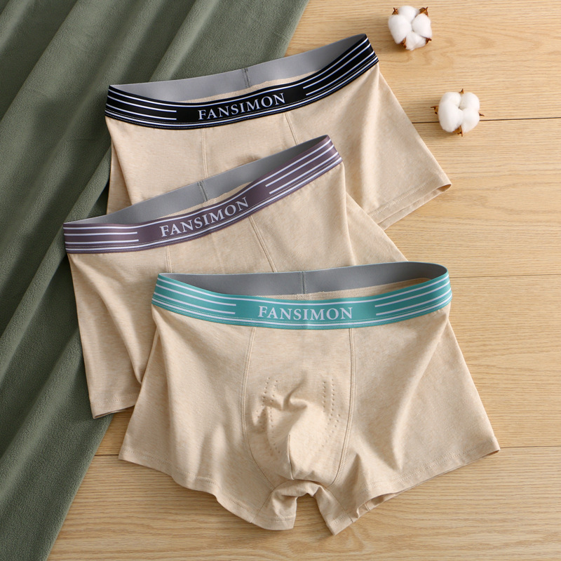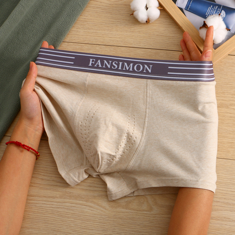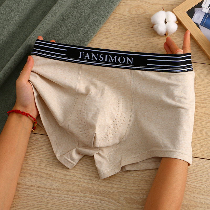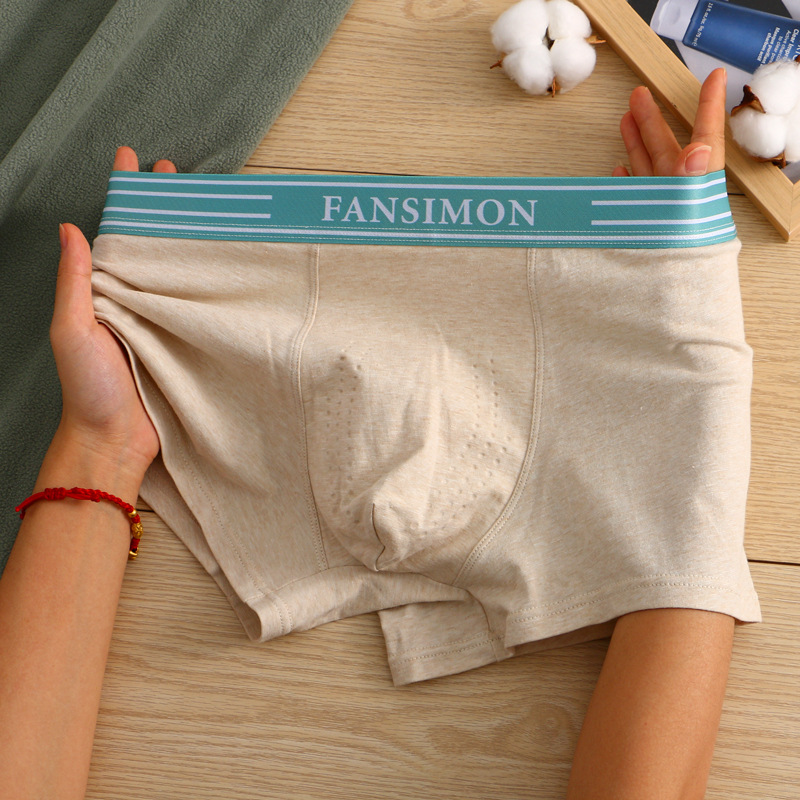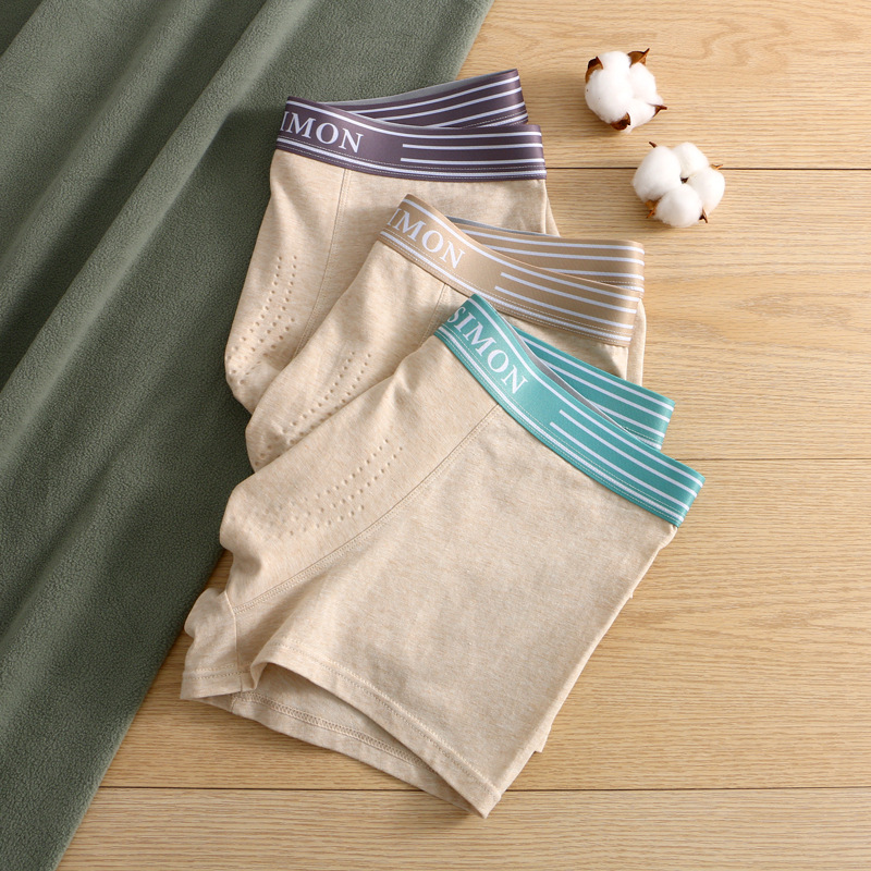 新款男士彩棉内裤男透气颗粒养护男生平角裤纯色中腰大码四角裤头