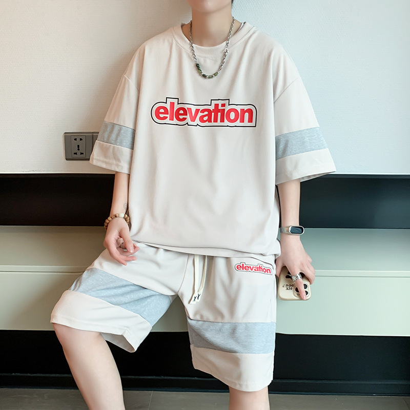 夏季青少年短袖T恤短裤一套半袖套装通勤简单百搭年轻港风时尚