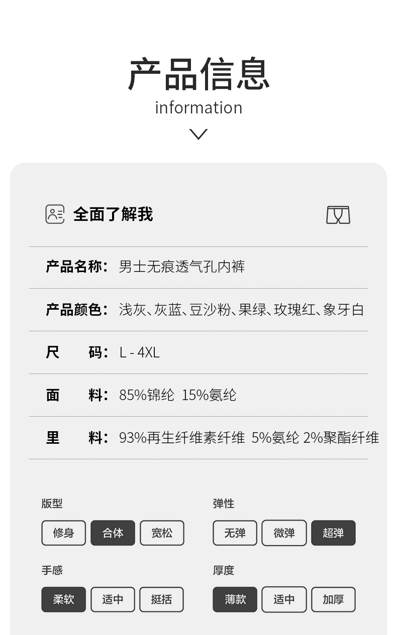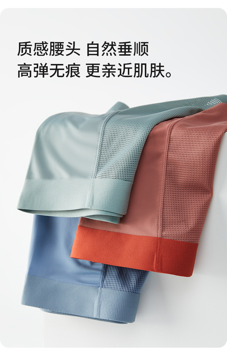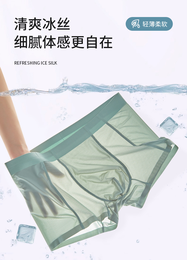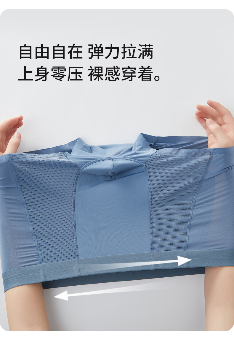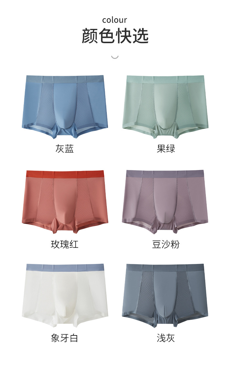 新品爆款男士内裤冰丝无痕四角裤透气网孔空调裤抑菌裆中腰平角裤